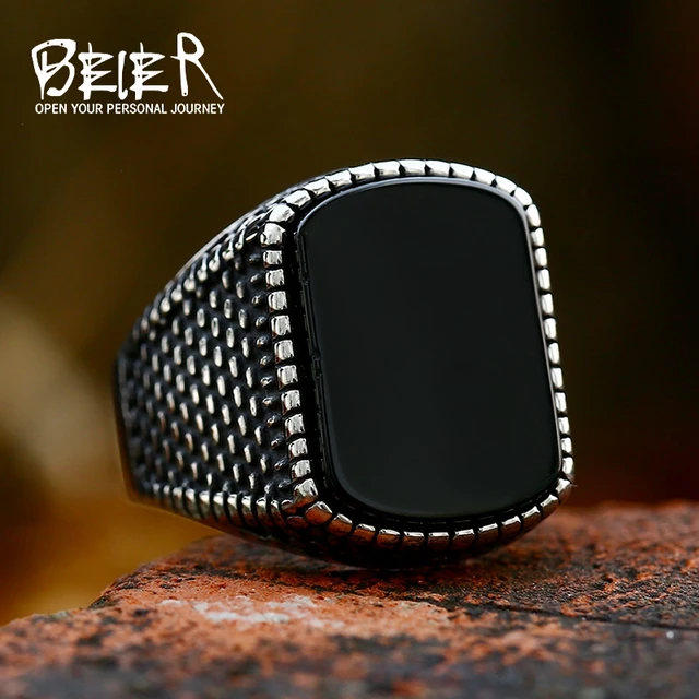BEIER 2022 New Fashion Stainless Steel With Zircon Black Agate Stone Wedding Engagement Bands Rings
