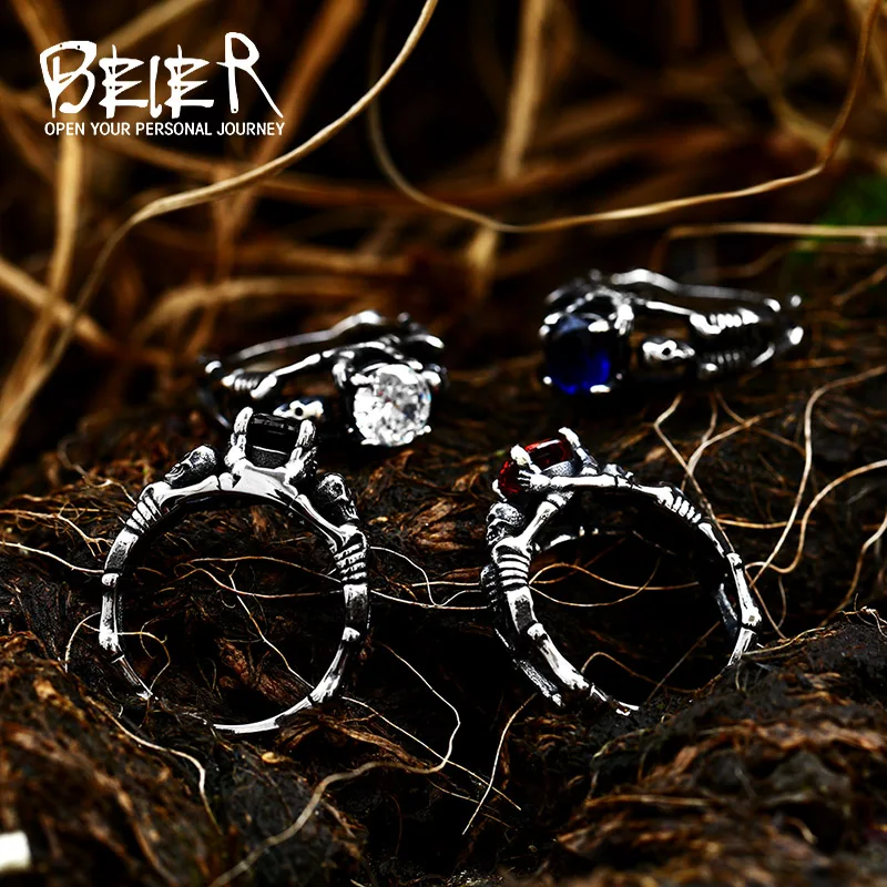 BEIER 316L stainless steel Simple men and women skull rings Fashion Inlaid Red/Blue/Black/white Stone