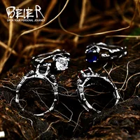 BEIER 316L stainless steel Simple men and women skull rings Fashion Inlaid Red/Blue/Black/white Stone jewelry BR8-907