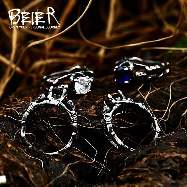 Be the first to review “BEIER 316L stainless steel Simple men and women skull rings Fashion Inlaid Red/Blue/Black/white Stone”