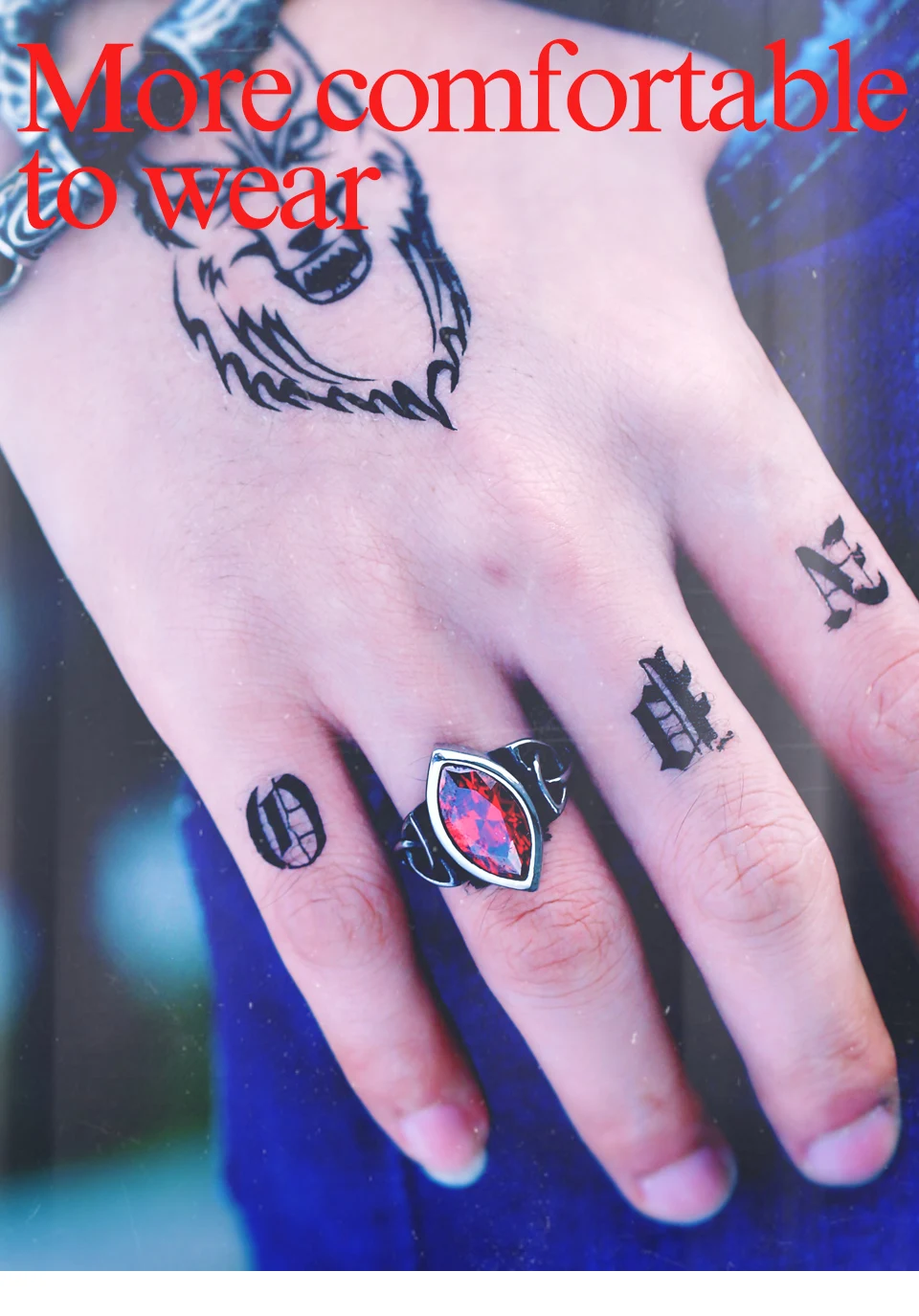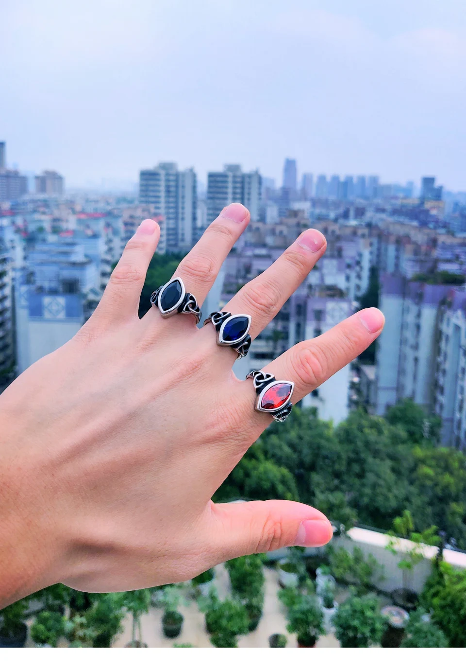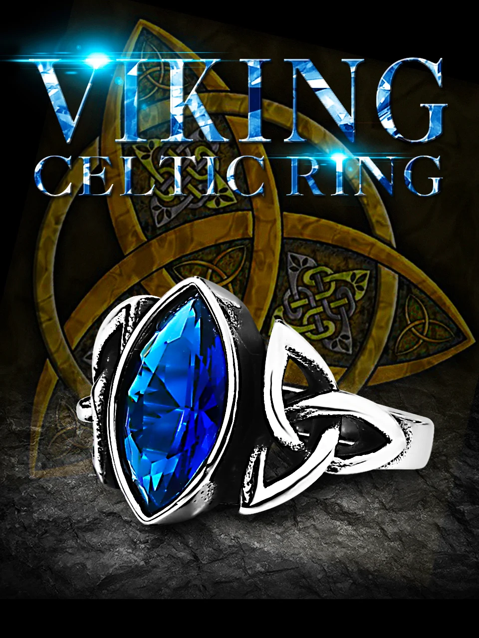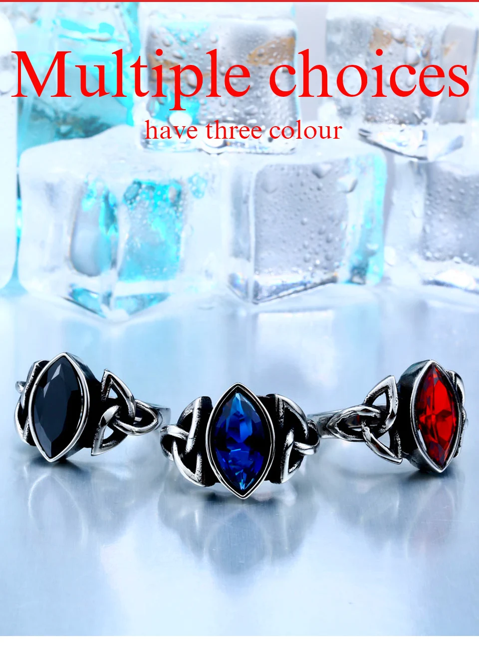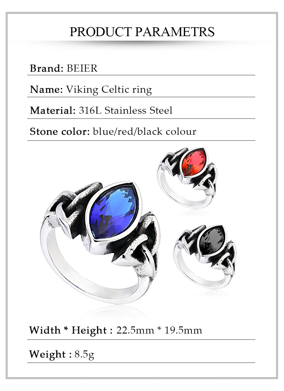 Be the first to review “BEIER NEW Cool Blue/Red/Black Zircon Northern Europe Viking Stainless Steel Ring Vintage Retro geometry”