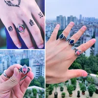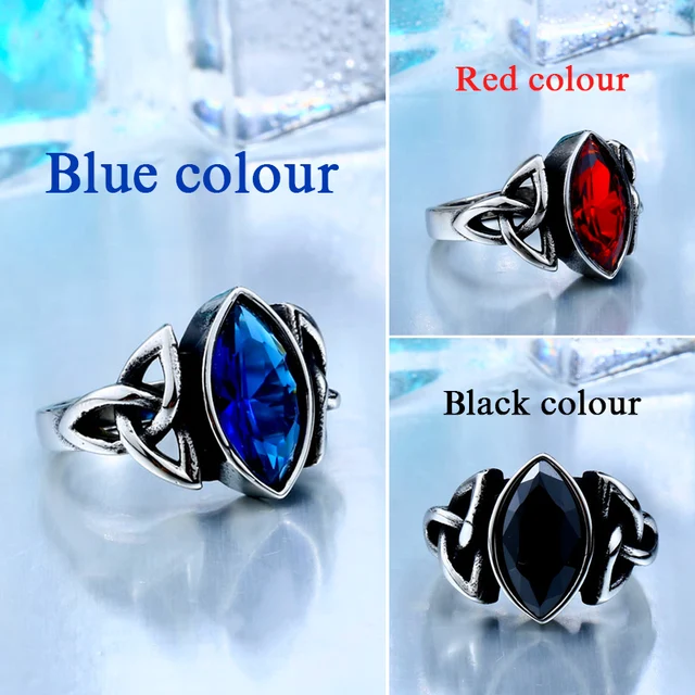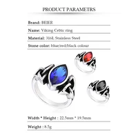 BEIER NEW Cool Blue/Red/Black Zircon Northern Europe Viking Stainless Steel Ring Vintage Retro geometry