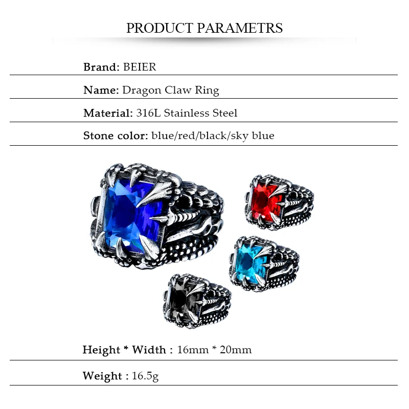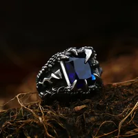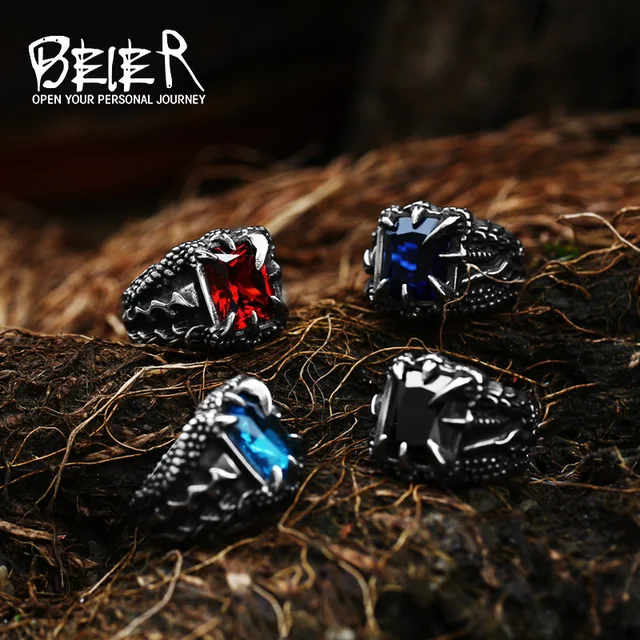 BEIER NEW Cool Blue/Red/Black Zircon Northern Europe Viking Stainless Steel Ring Vintage Retro geometry Jewelry For Man BR8-269