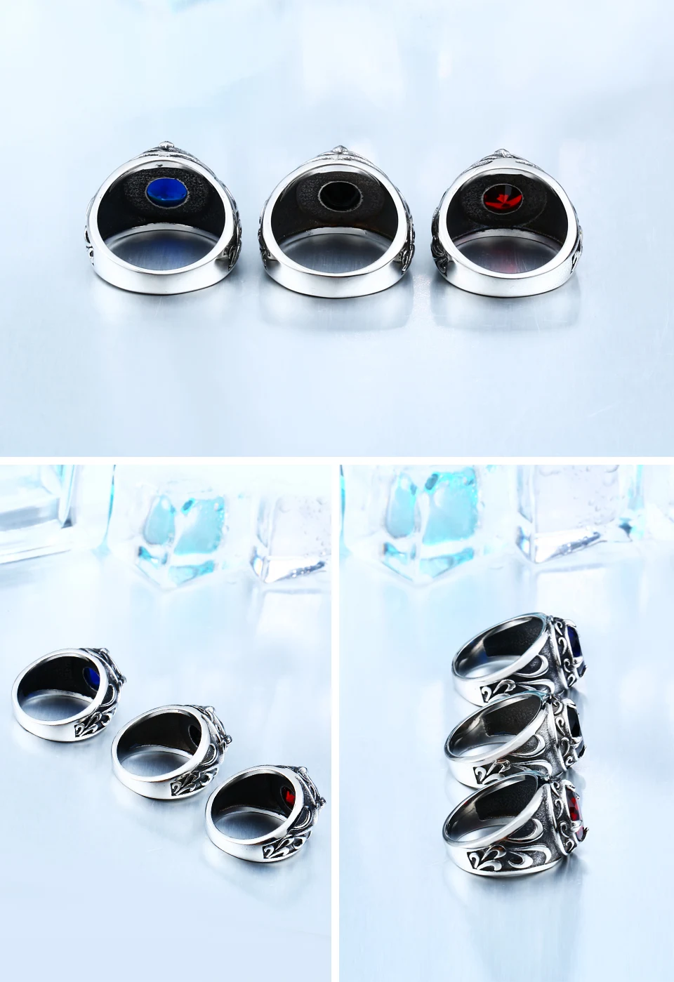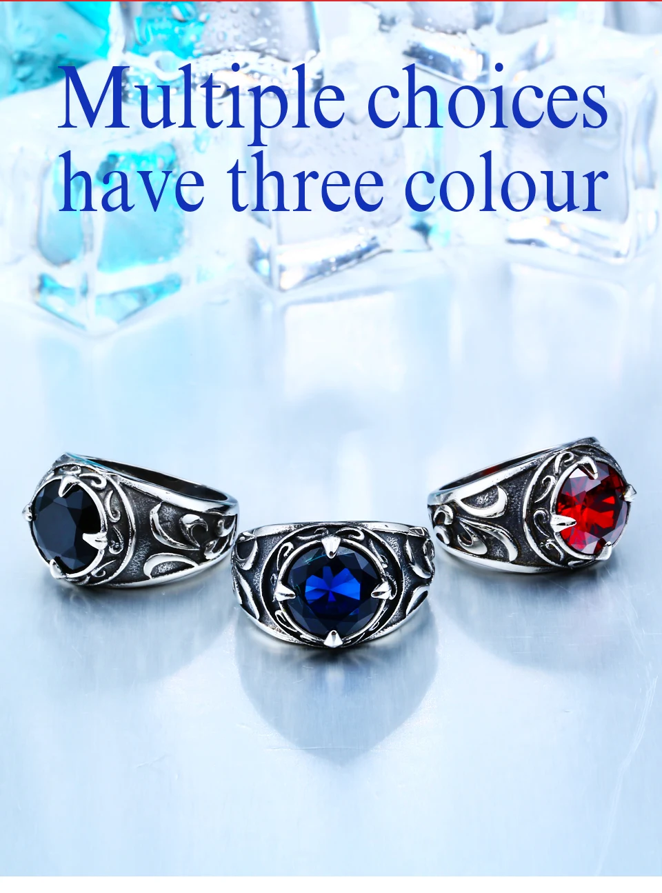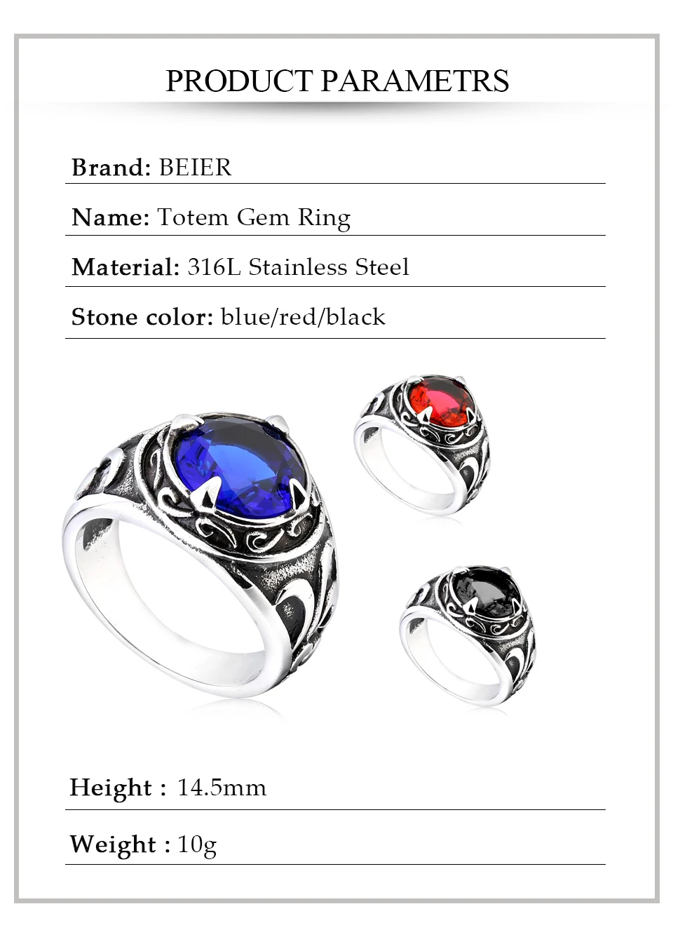 Be the first to review “BEIER New Vintage Northern Europe Viking Stainless Steel Ring With 3colour Stone Fashion Retro Cool”