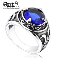 BEIER New Vintage Northern Europe Viking Stainless Steel Ring With 3colour Stone Fashion Retro Cool Jewelry BR8-270