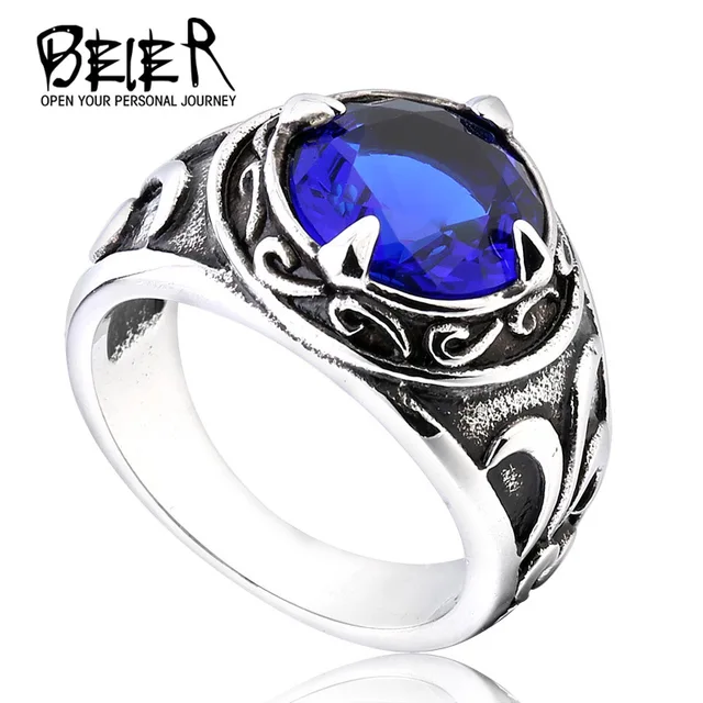 BEIER New Vintage Northern Europe Viking Stainless Steel Ring With 3colour Stone Fashion Retro Cool