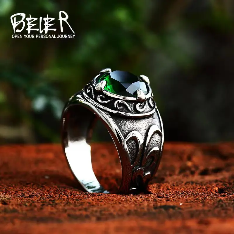 BEIER  New Vintage Northern Europe Viking Stainless Steel Ring With 3colour Stone Fashion Retro Cool Jewelry  BR8-270