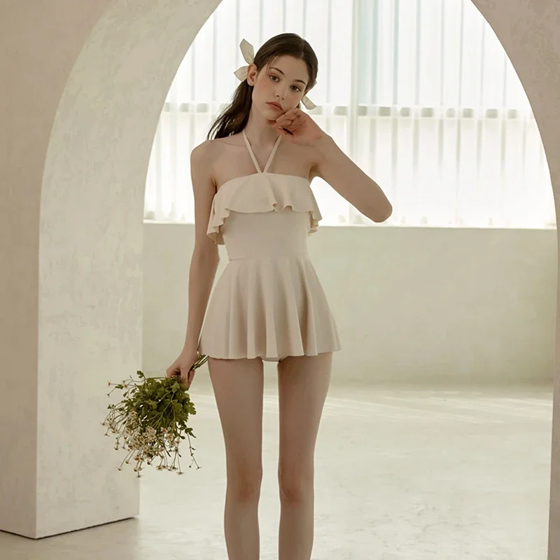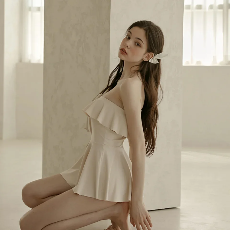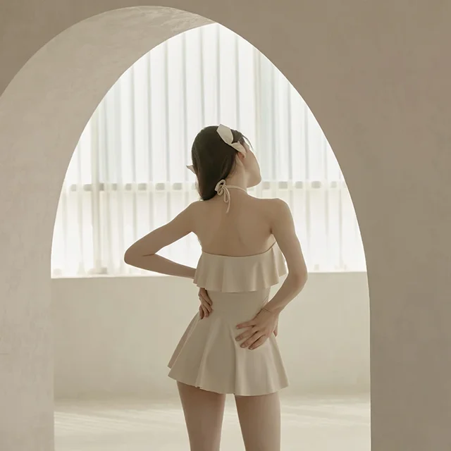 Korean Style One Piece Swimwear Long Sleeve Cut Out Swimsuit Dress Red Bathing Suit Sexy Monokini Swim Pool Beachwear 2024 New