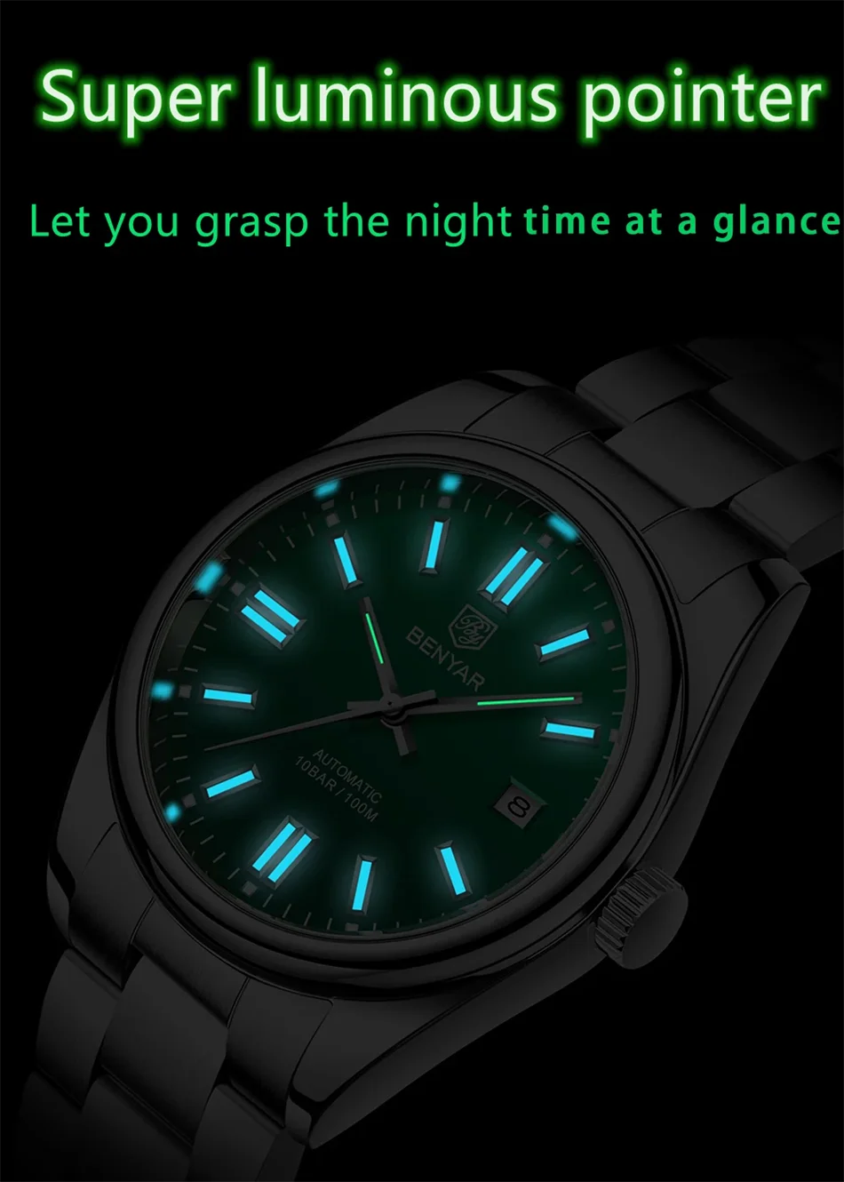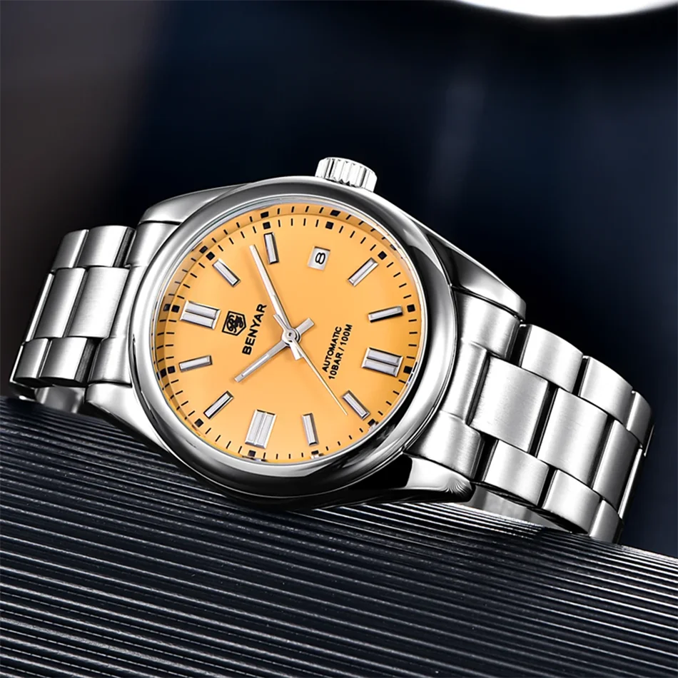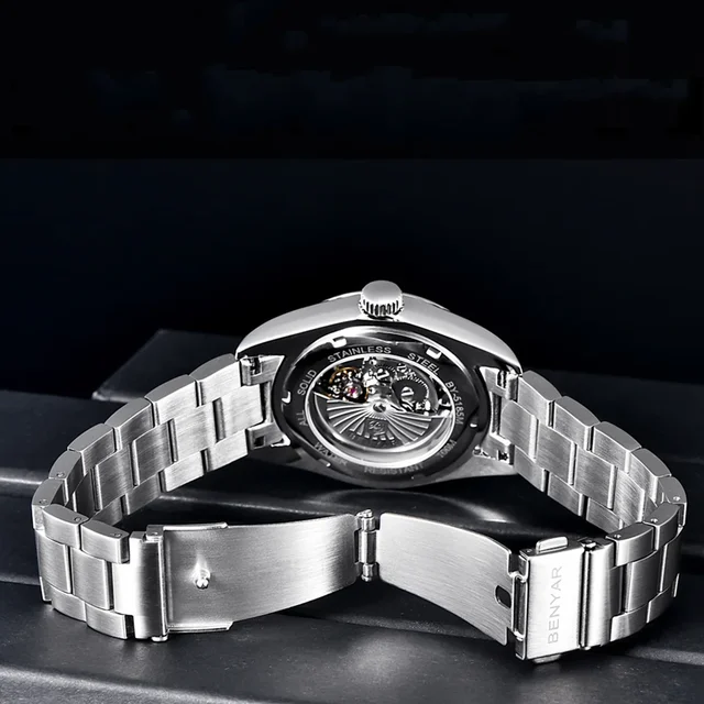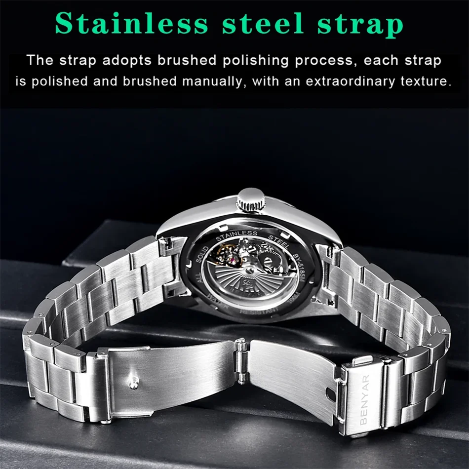 BENYAR New Luxury Automatic Watch 10Bar Waterproof Stainless Steel Men Mechanical Wristwatches Sports