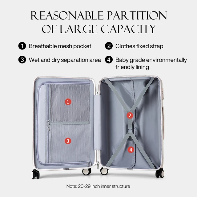 Each component is independently separable, which makes it easy to sort and recycle the trolley case that has reached the end of its usage life, avoiding non-degradable pollution to the environment.