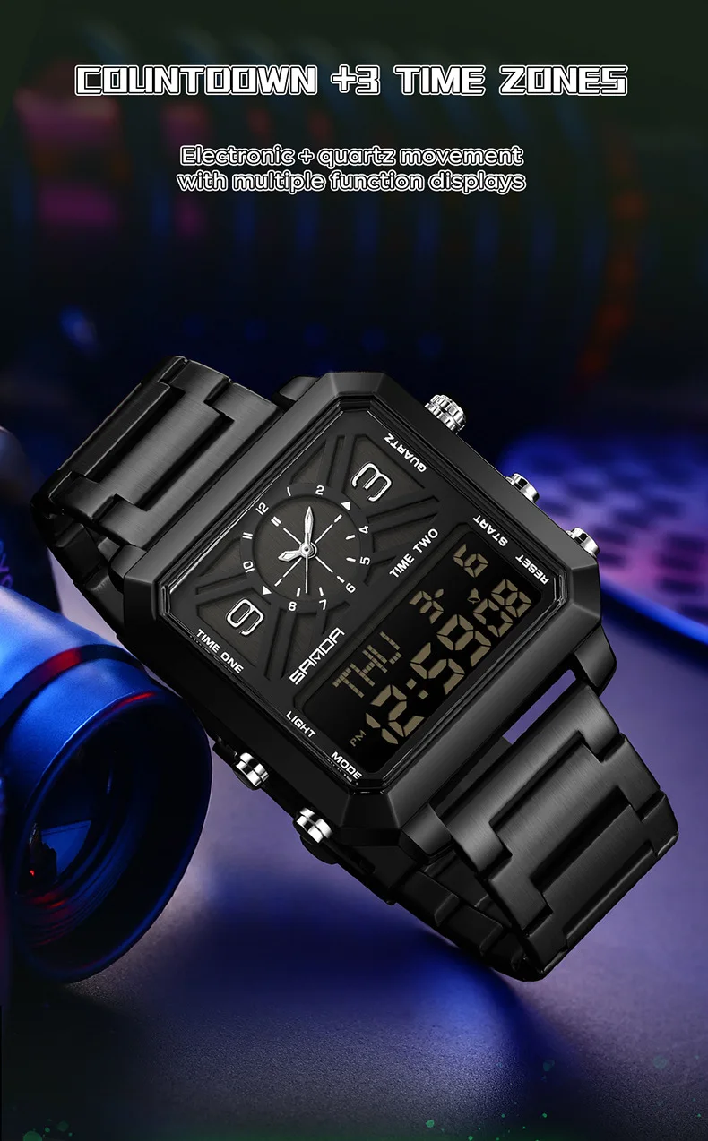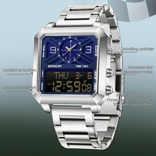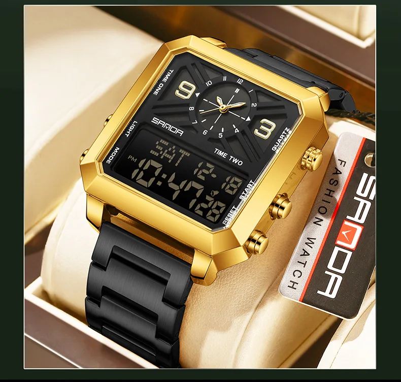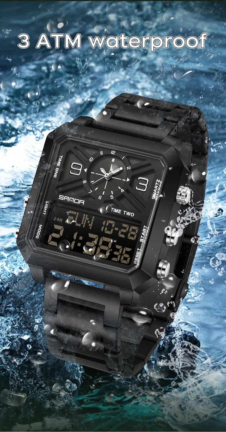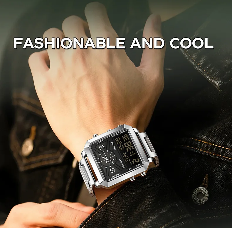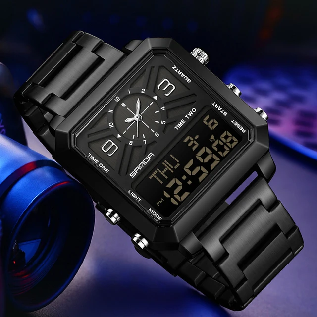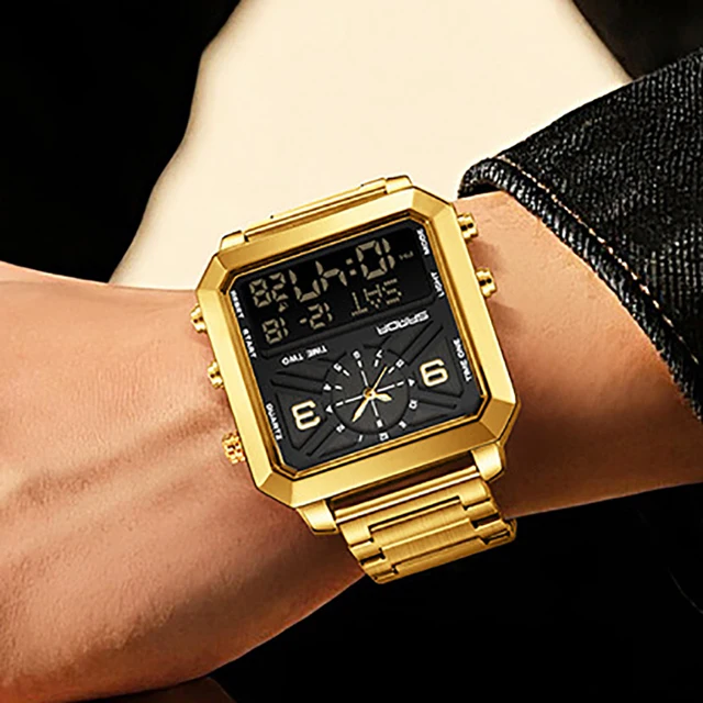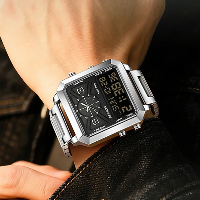 Big Dial Men Sports Watches Creative Unique Design For Male Clock Men Dual Display Digital Watches High