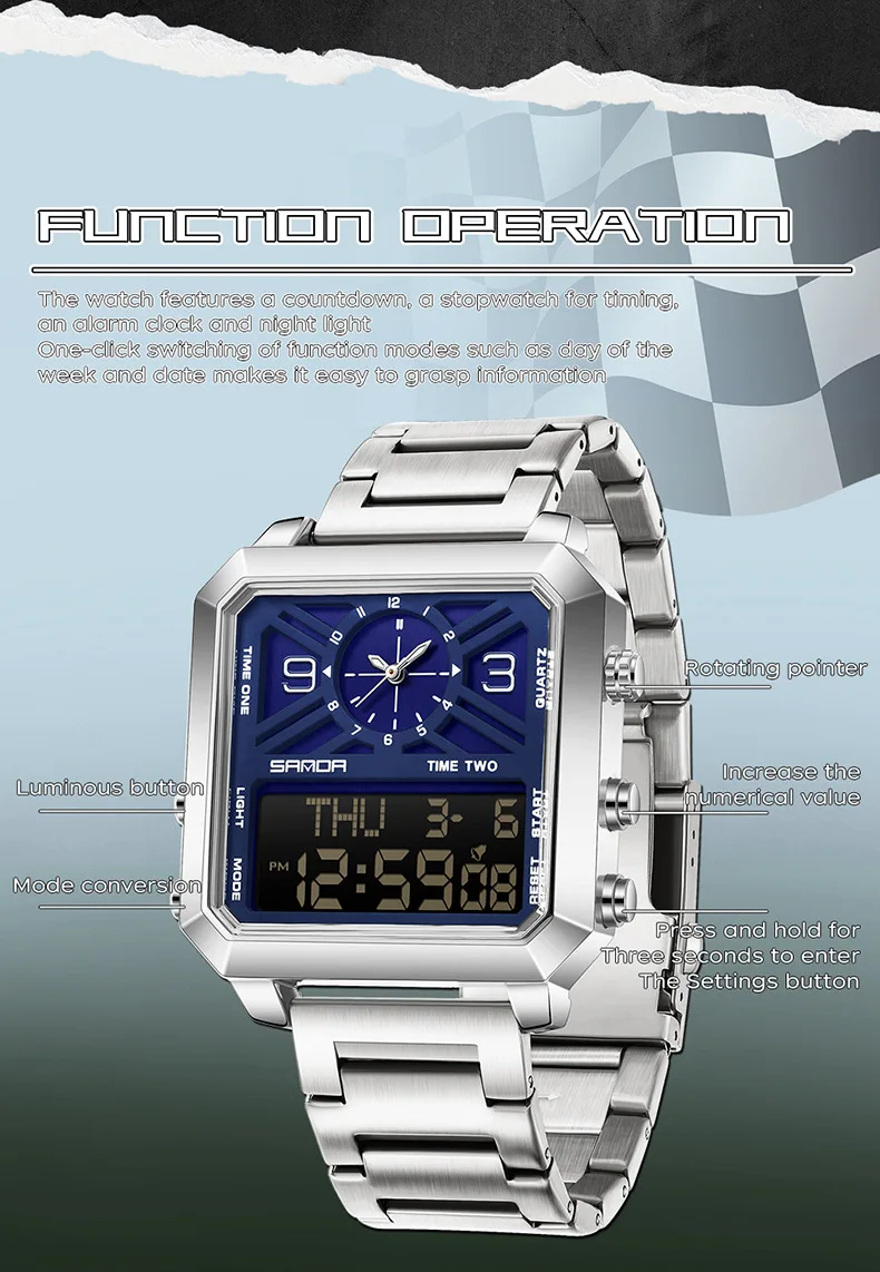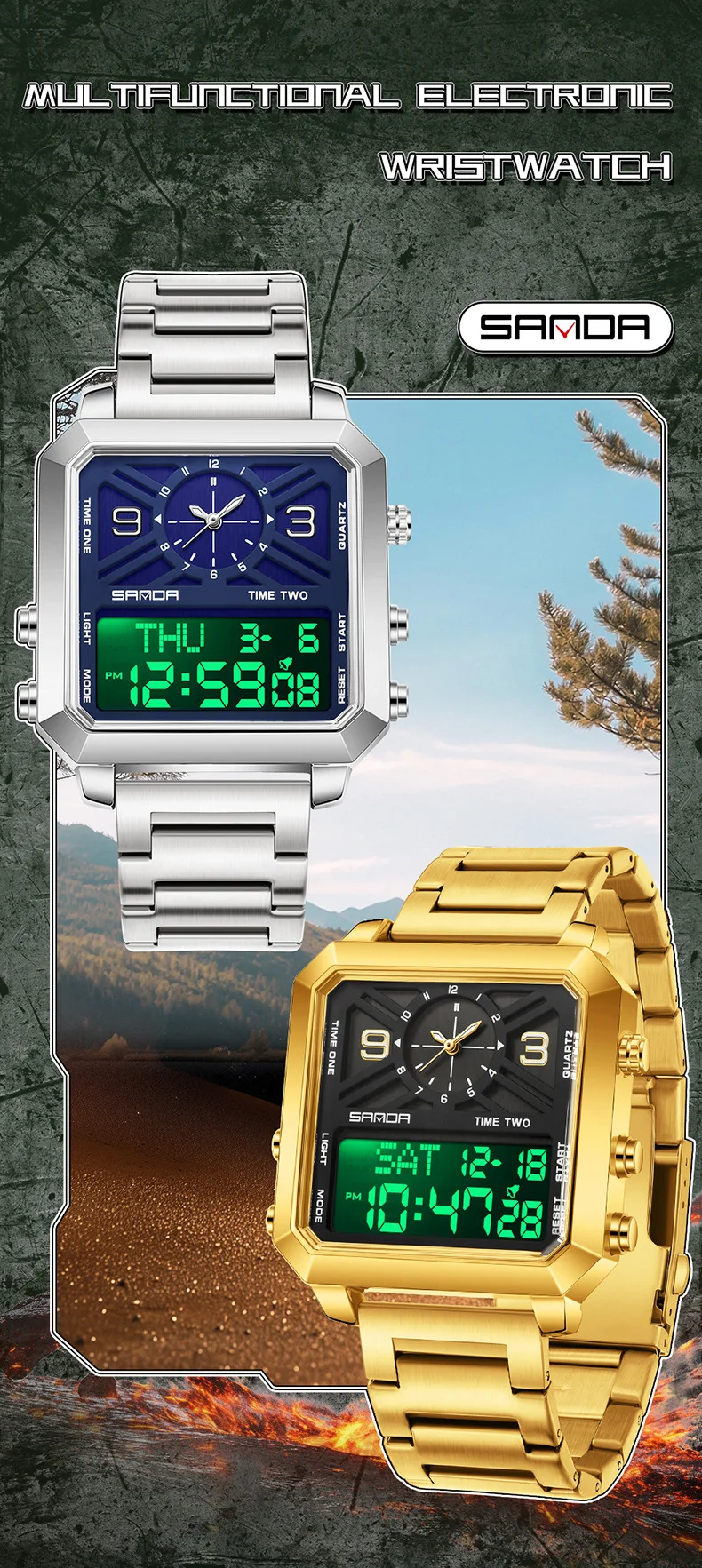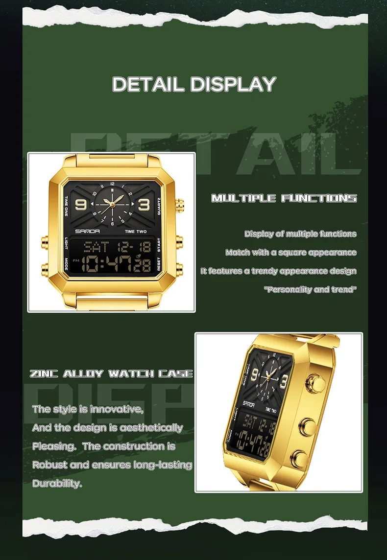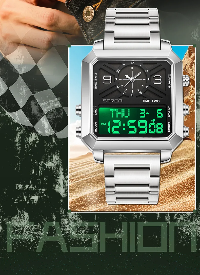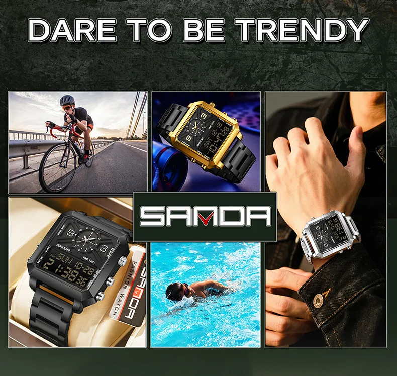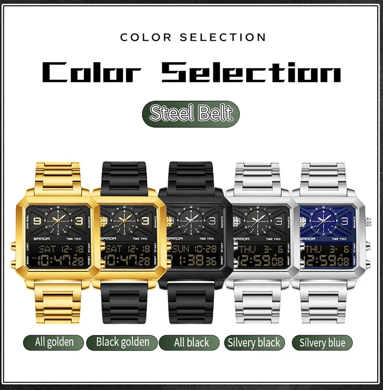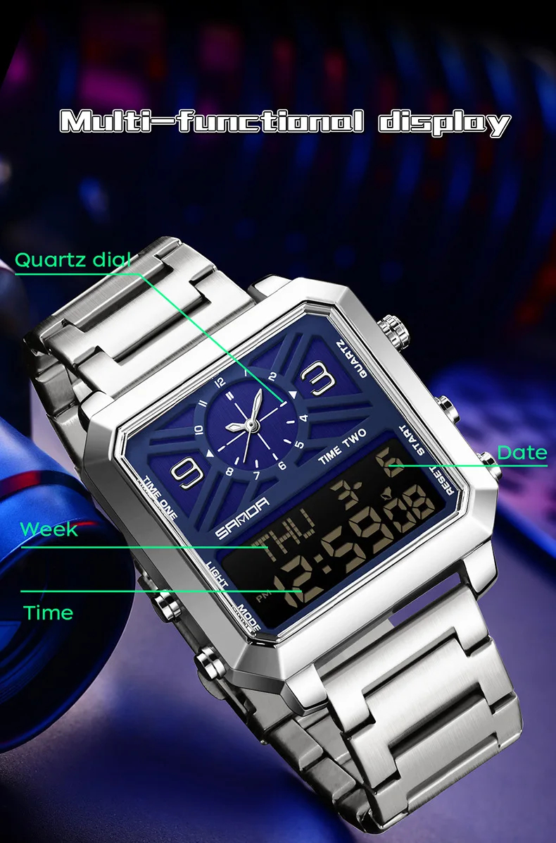 Big Dial Men Sports Watches Creative Unique Design For Male Clock Men Dual Display Digital Watches High