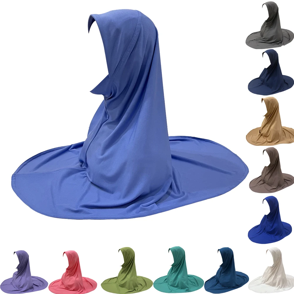 Forehead Cross Instant Hijab Chiffon Scarf with Hat Cap Bonnet Muslim Headscarf Veil One Piece Amira Shawl Wrap Turban Bonnet