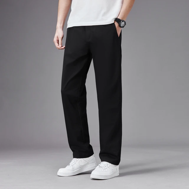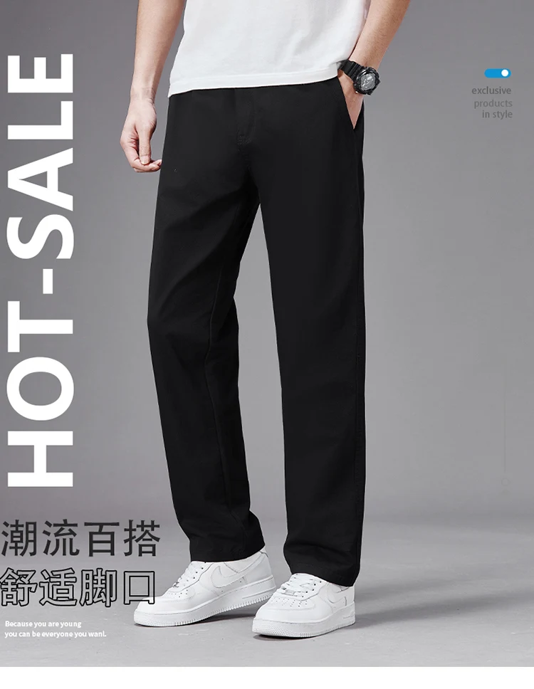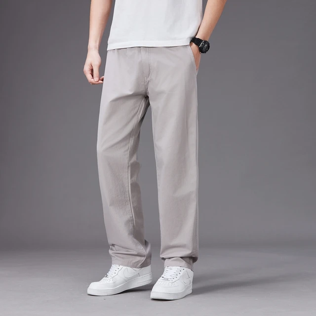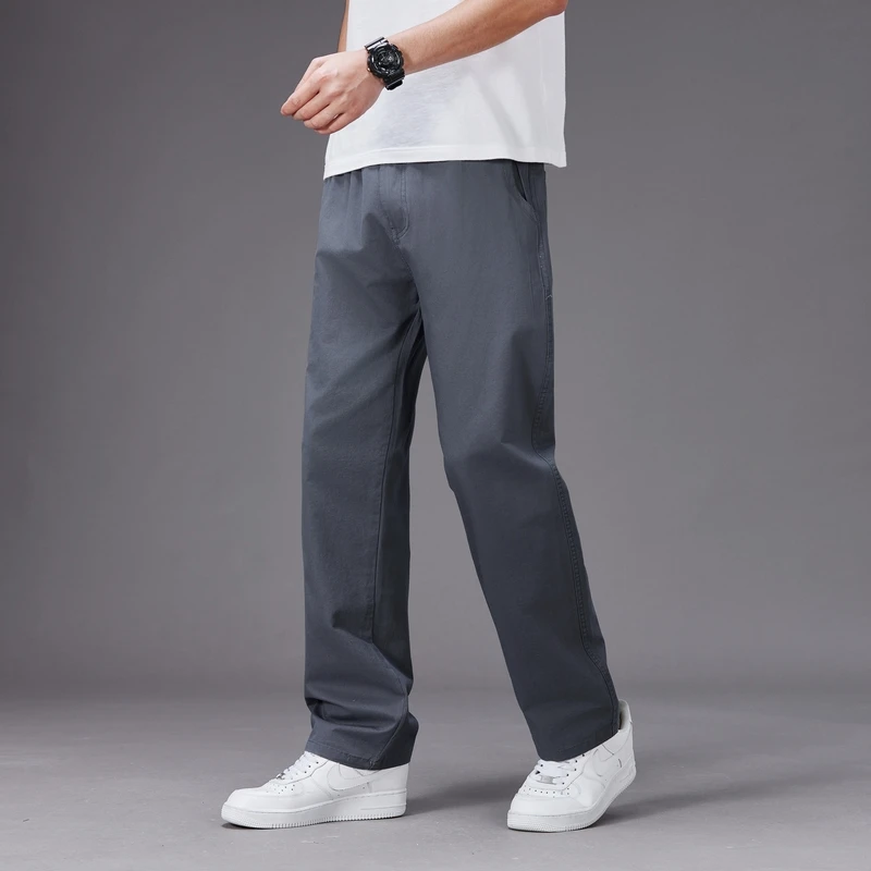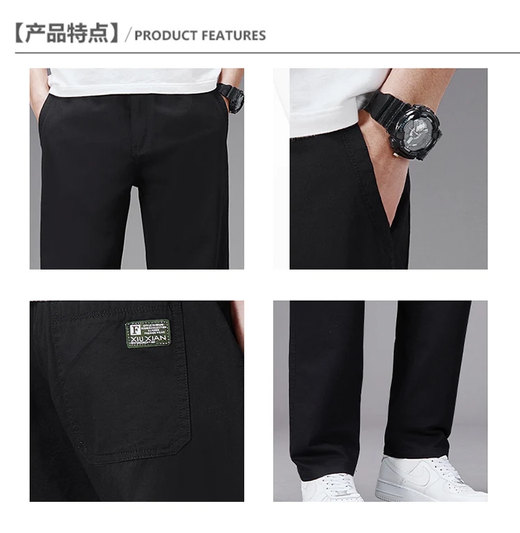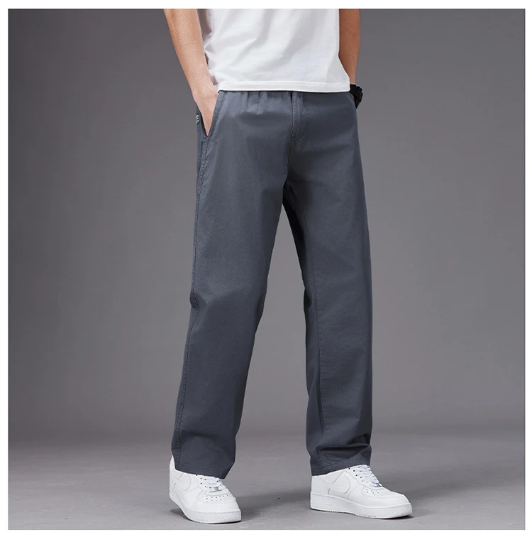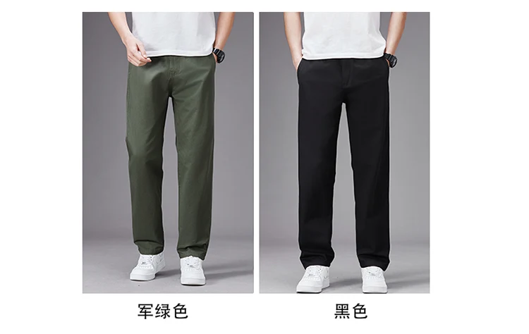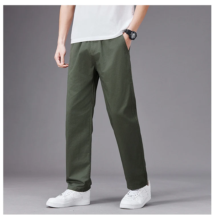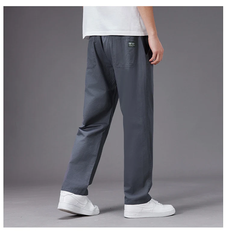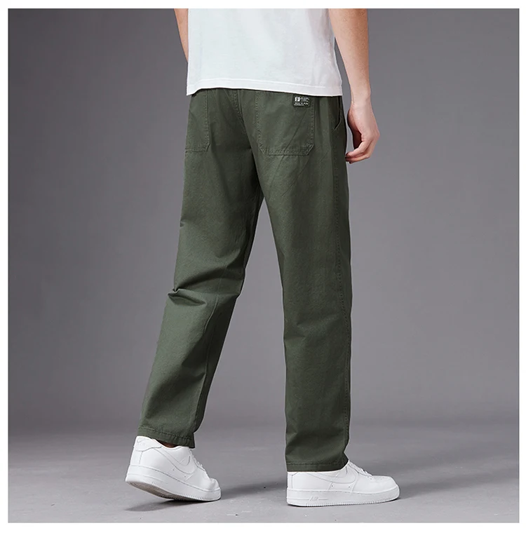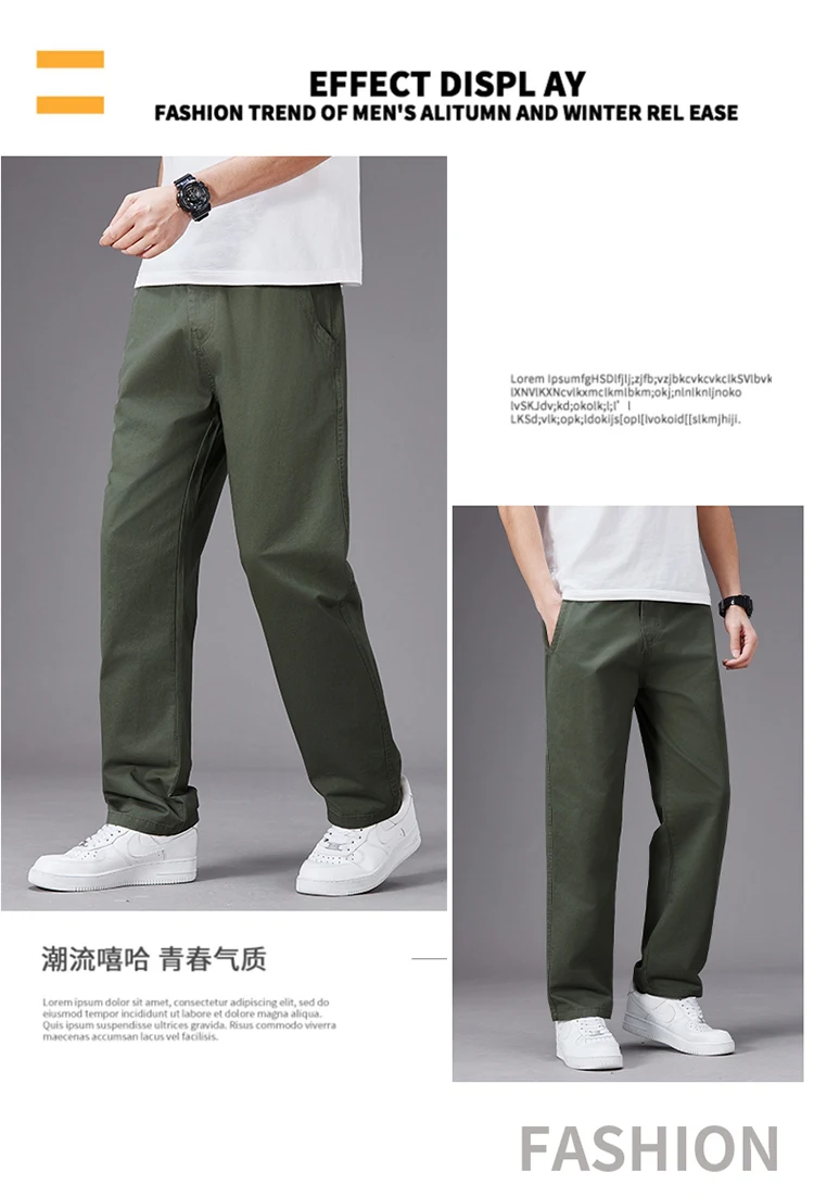 Men's Loose Straight Leg Cotton Work Trousers Outdoor Casual Long Pants Large Size Comfortable Breathable Machine Washable