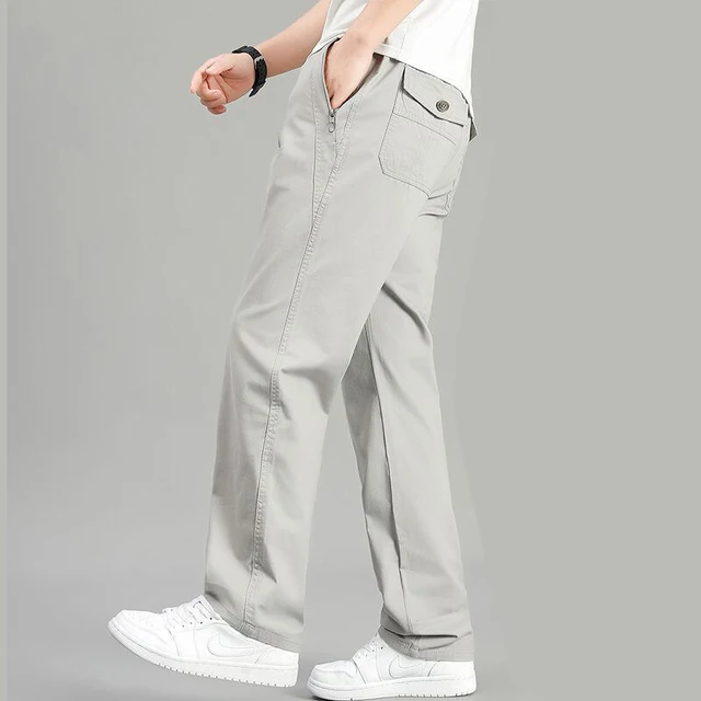 New Cargo Pants Men's Loose Straight Oversize Clothing Solid Grey Versatile Work Wear Black Joggers Cotton Casual Male Trousers