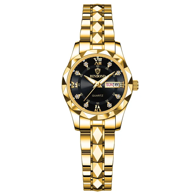 Binbang 2522 Luxury Fashion Women's Quartz Watch, Tungsten Steel Timer, Dual Calendar, Night Light, Waterproof, Novelty