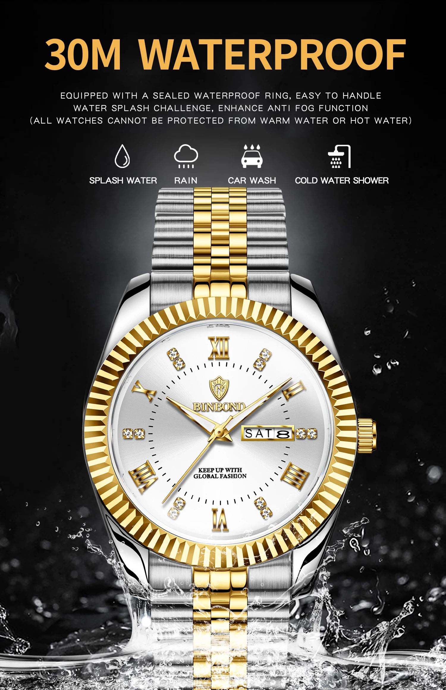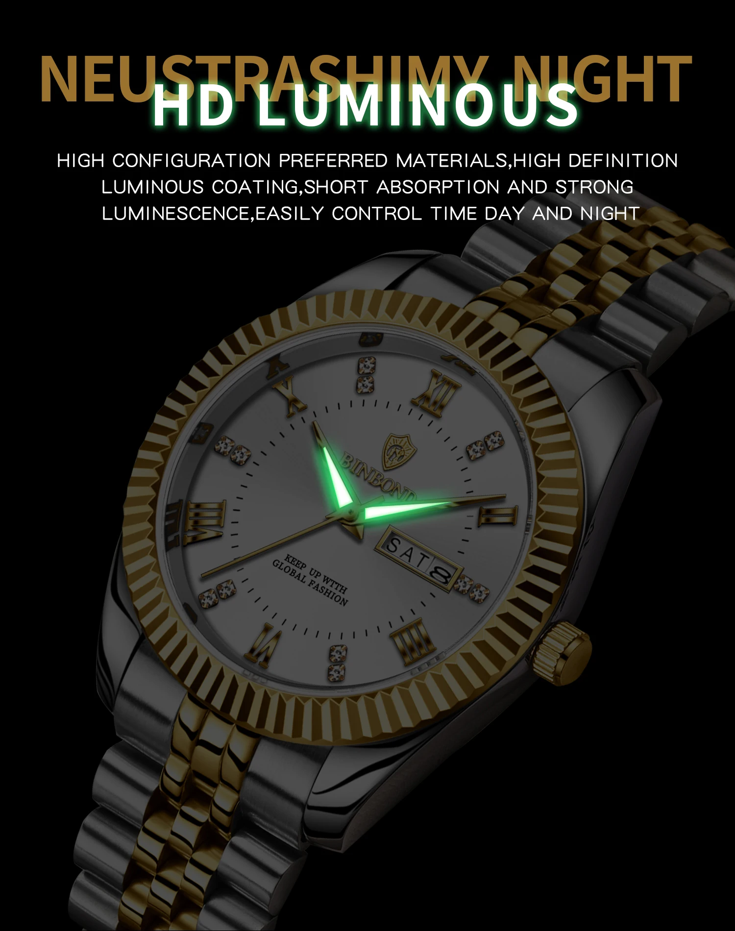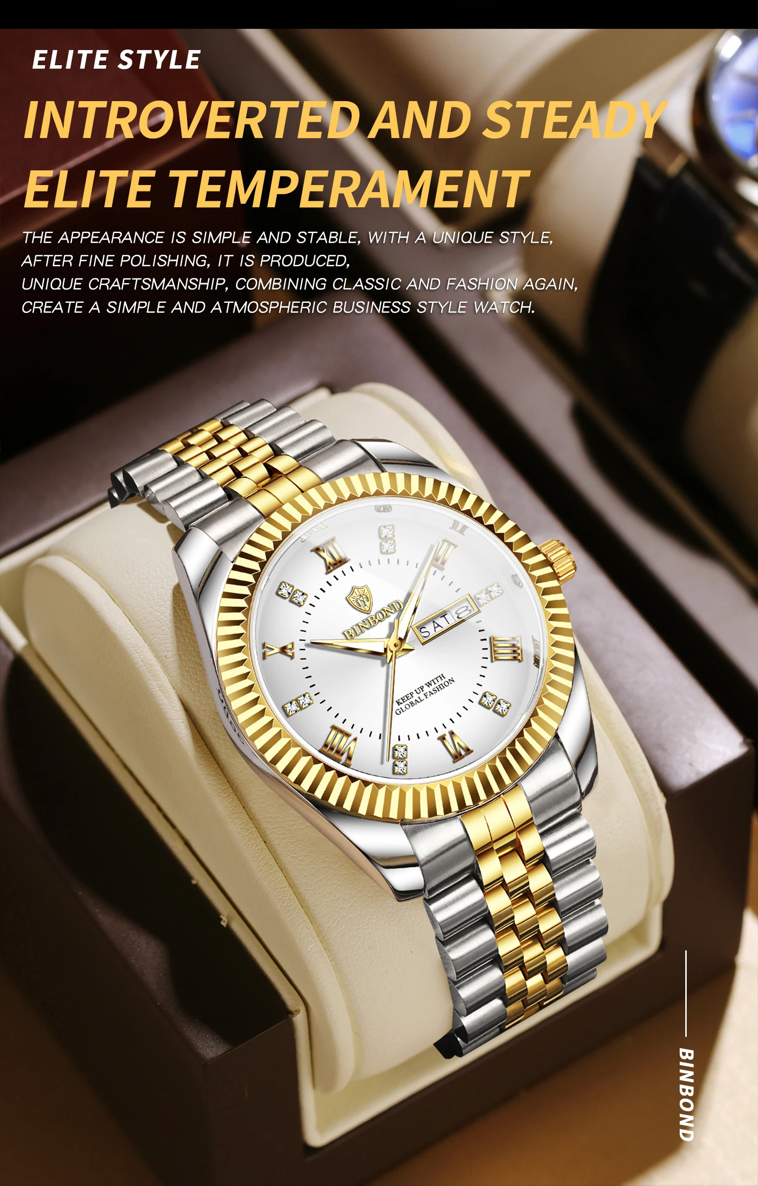 BINBOND Brand Mens Business Sports Quartz Watch Classic Waterproof Luminous Calendar Creative Clock Male Personalized Wristwatch