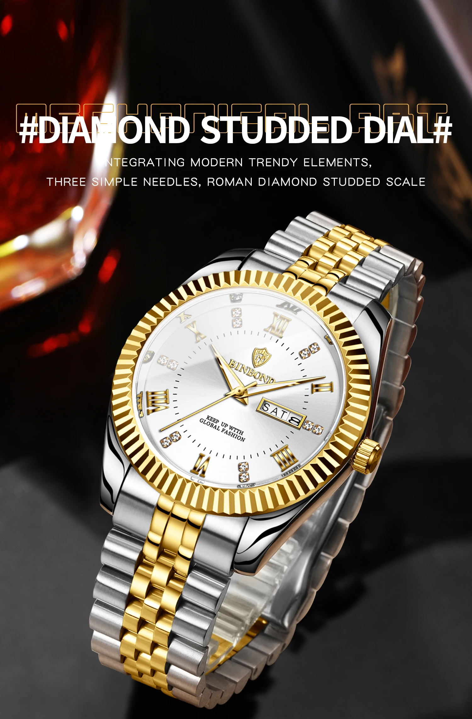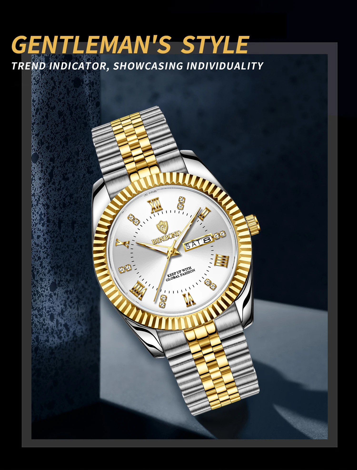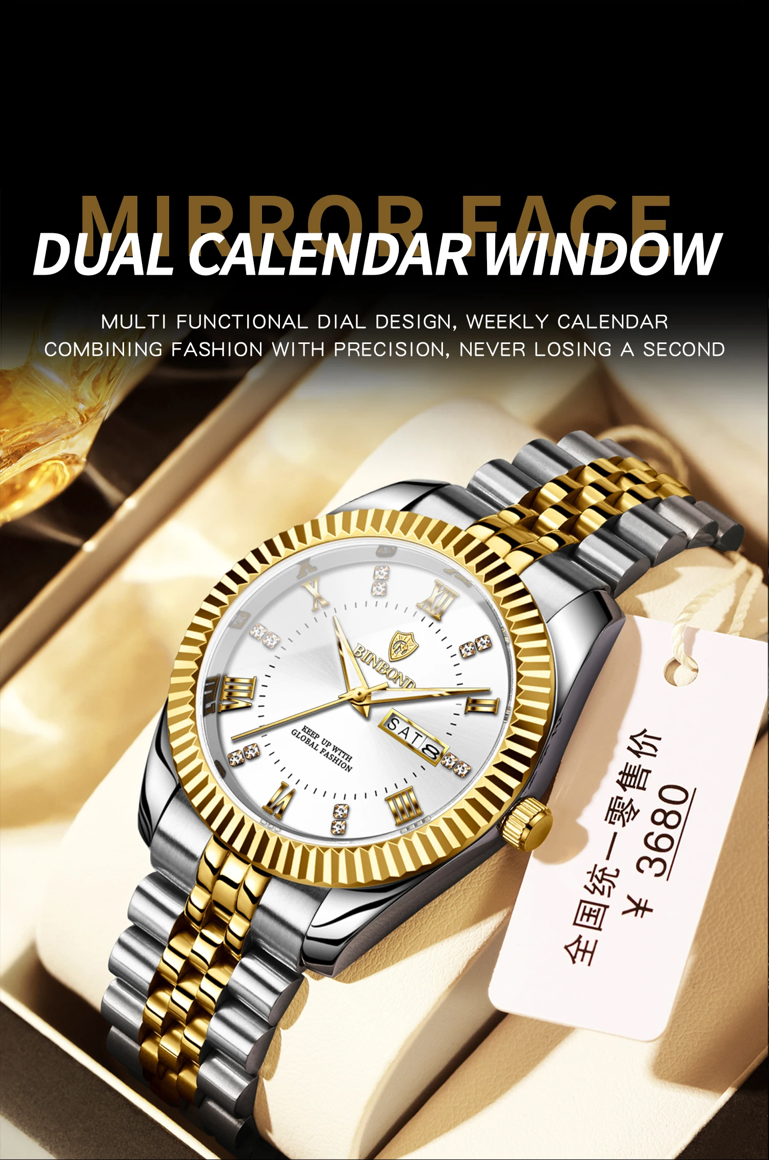 BINBOND Brand Mens Business Sports Quartz Watch Classic Waterproof Luminous Calendar Creative Clock Male Personalized Wristwatch