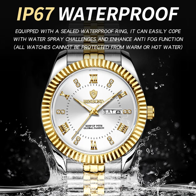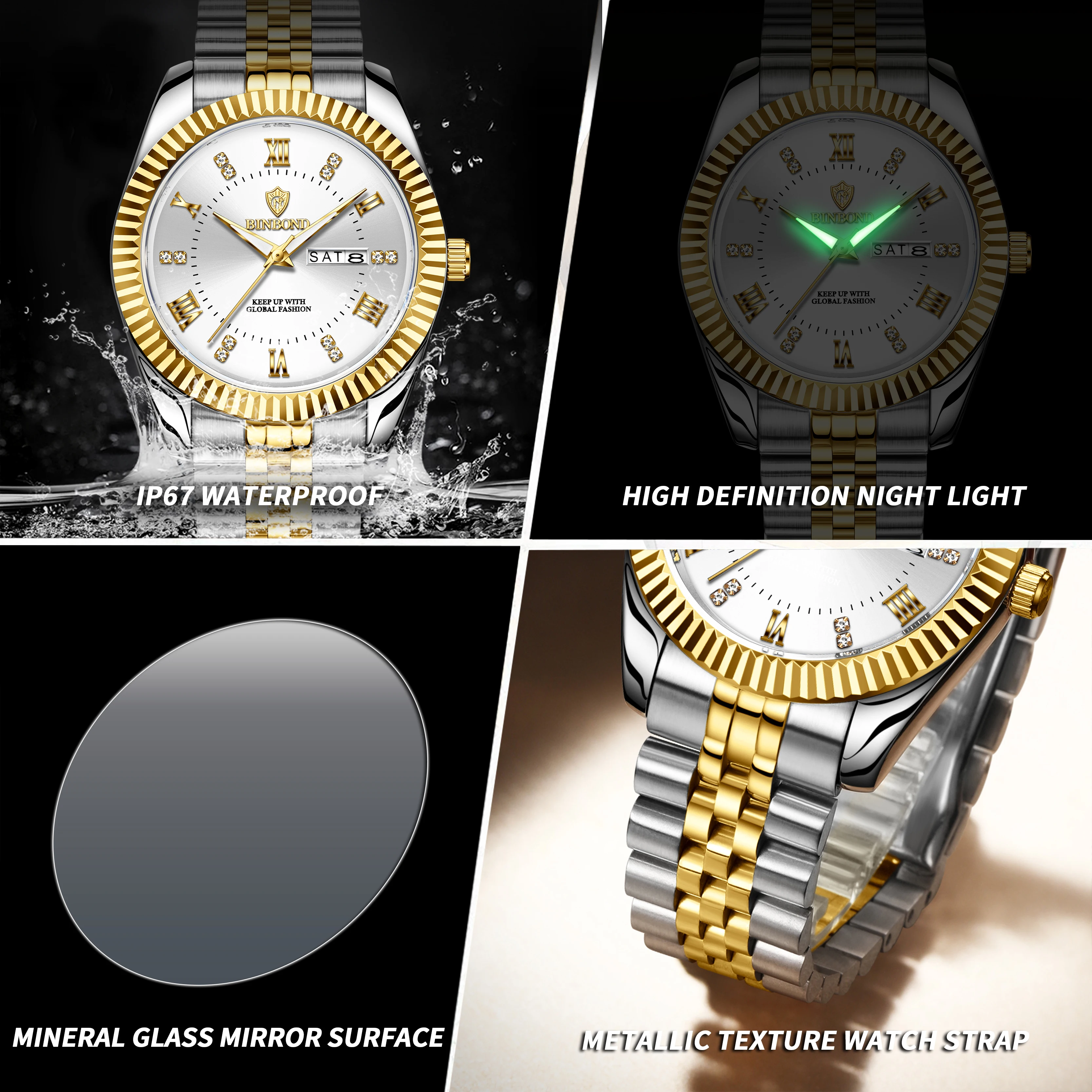 BINBOND Brand Mens Business Sports Quartz Watch Classic Waterproof Luminous Calendar Creative Clock Male Personalized Wristwatch