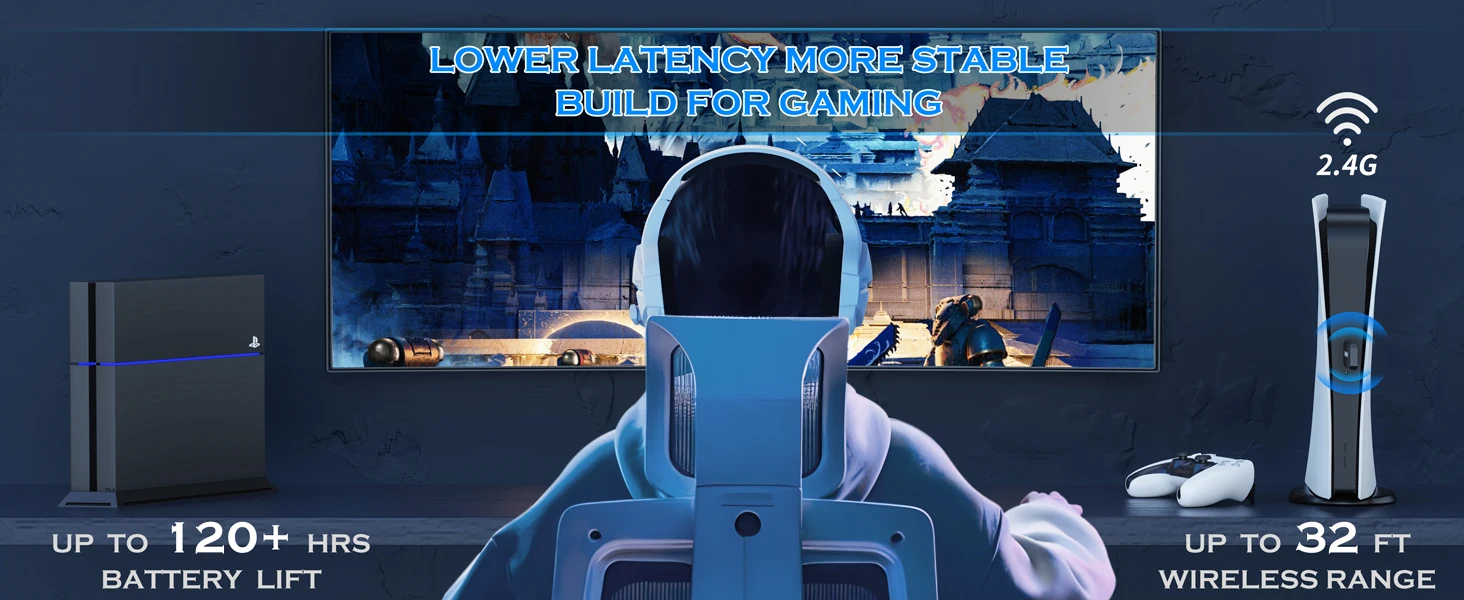 Wide Compatibility: The gaming headsets wireless is compatible with a variety of devices, including PS5, PS4, PC, Mac, mobile phones, and tablets. The ps5 headset wireless also has three modes: 2.4GHz USB adapter, Bluetooth 5.3 and 3.5mm wired connection. The pc headset only supports connecting to PS4/5 in 2.4GHz mode, without audio driver and firmware update. Bluetooth 5.3 mode supports PC, Mac, mobile phone, tablet. Connect immediately without any operation.