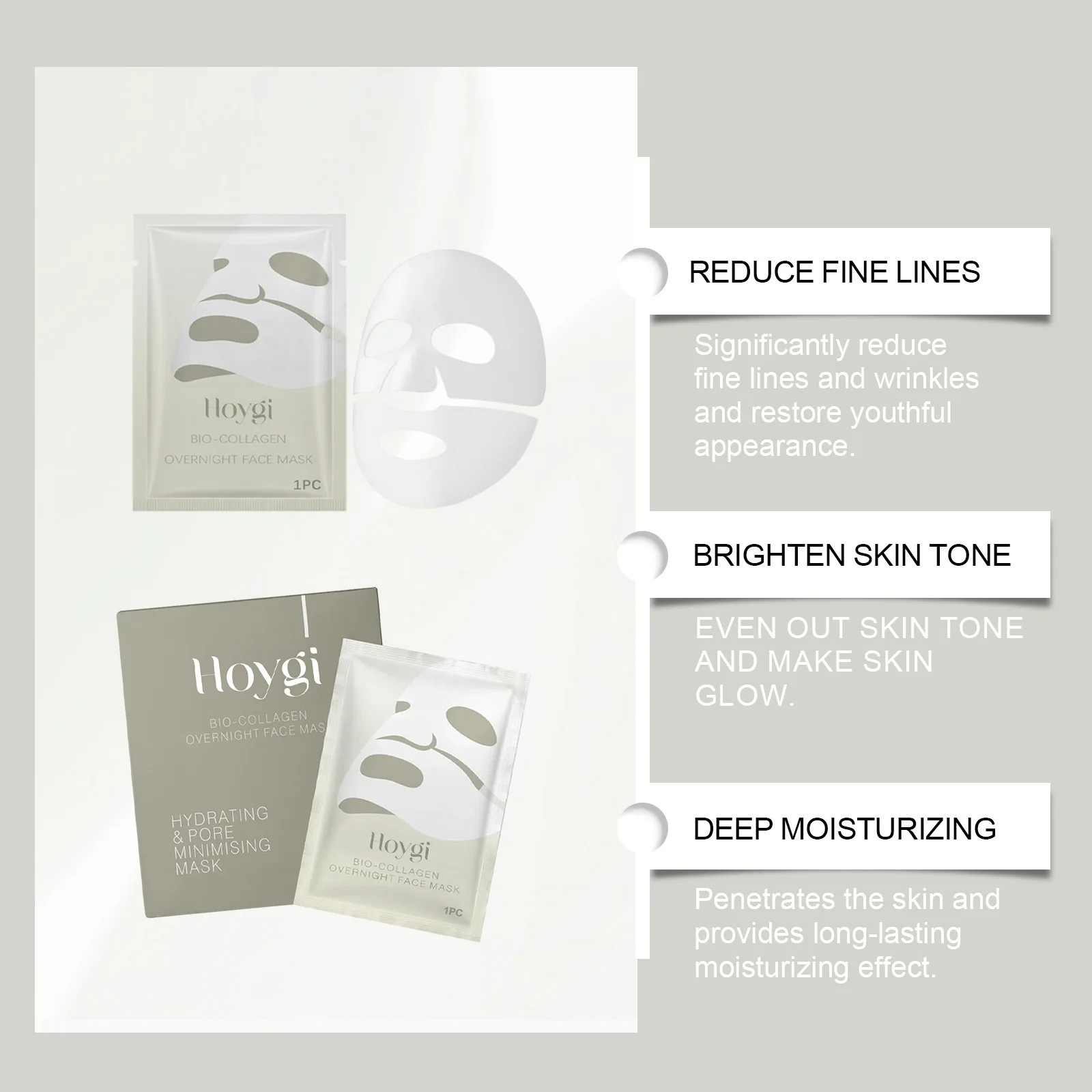 Hoygi Bio Collagen Face Mask Lifting Firming Anti-aging Shrink Pore Brightening Korean Skin Care Moisturizing Refreshing Sheet Mask