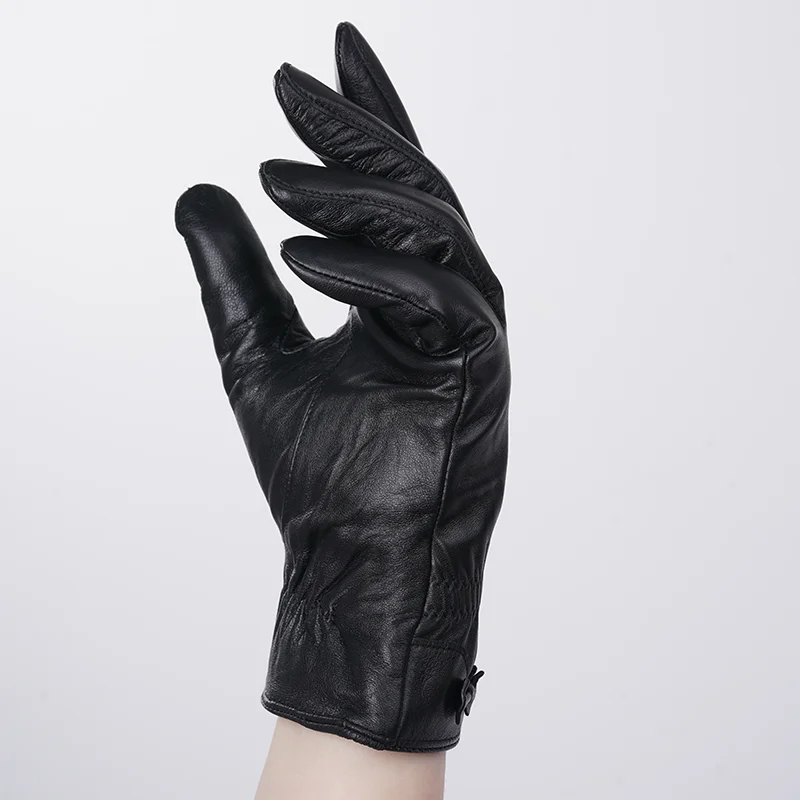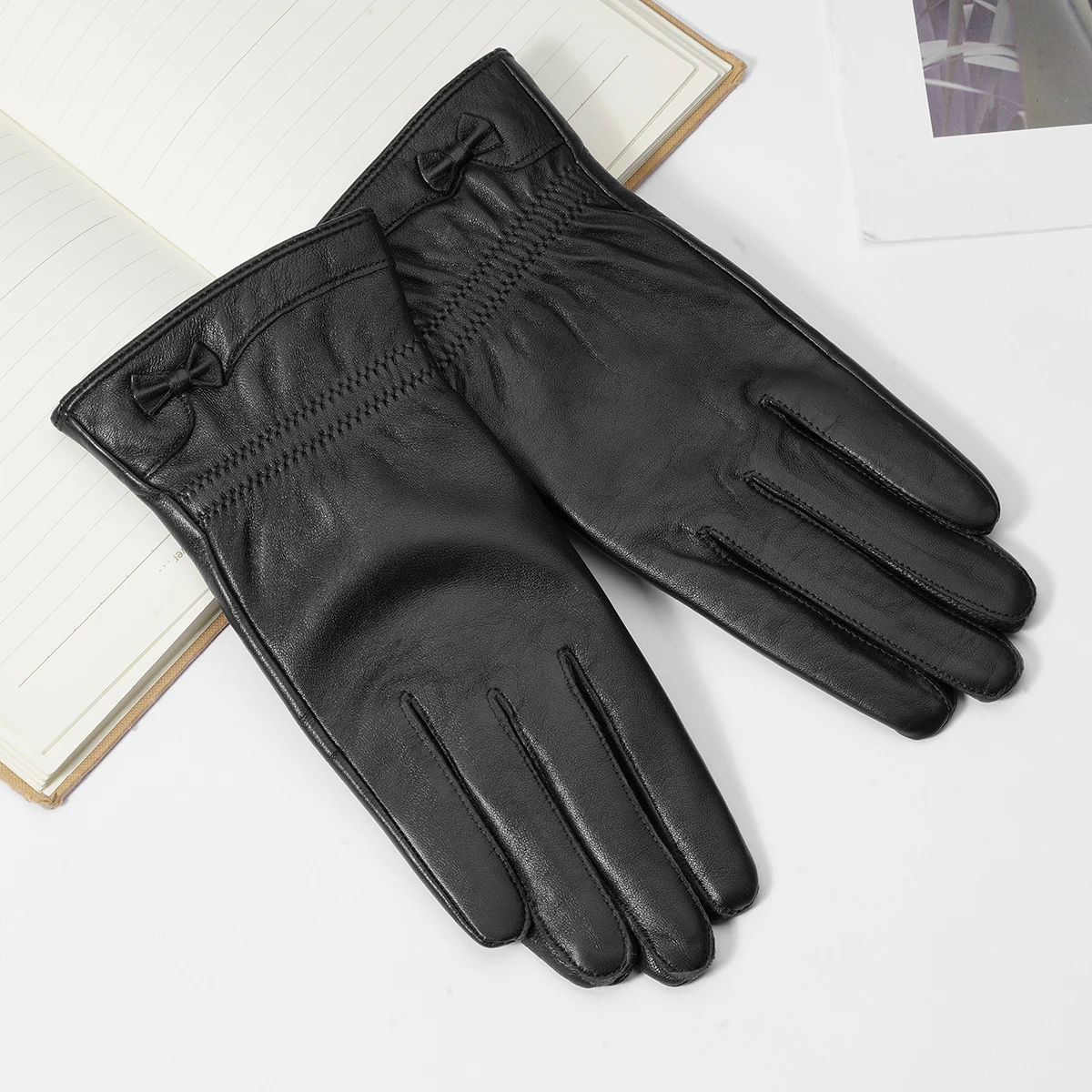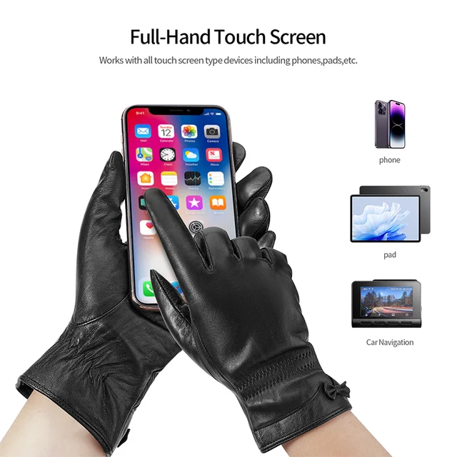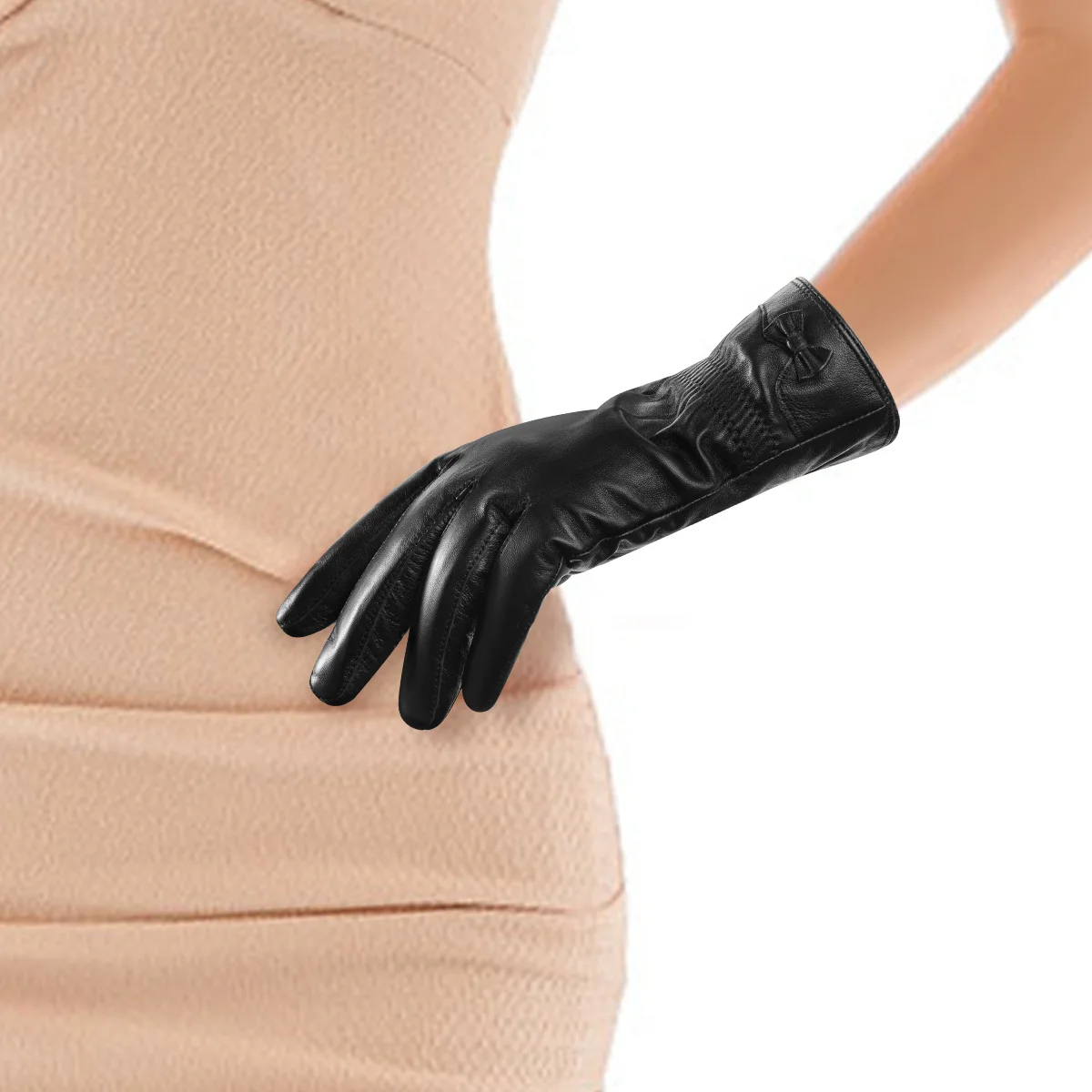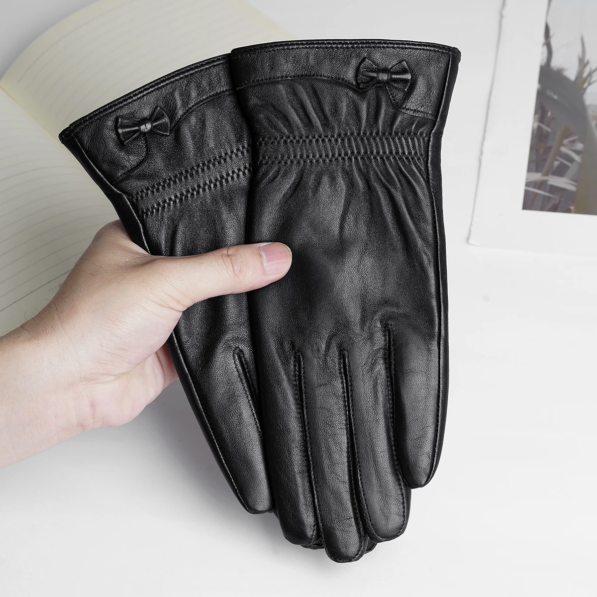 BISON DENIM Winter Touchscreen Gloves for Women, Sheepskin Leather Full-Finger Mittens, Breathable &