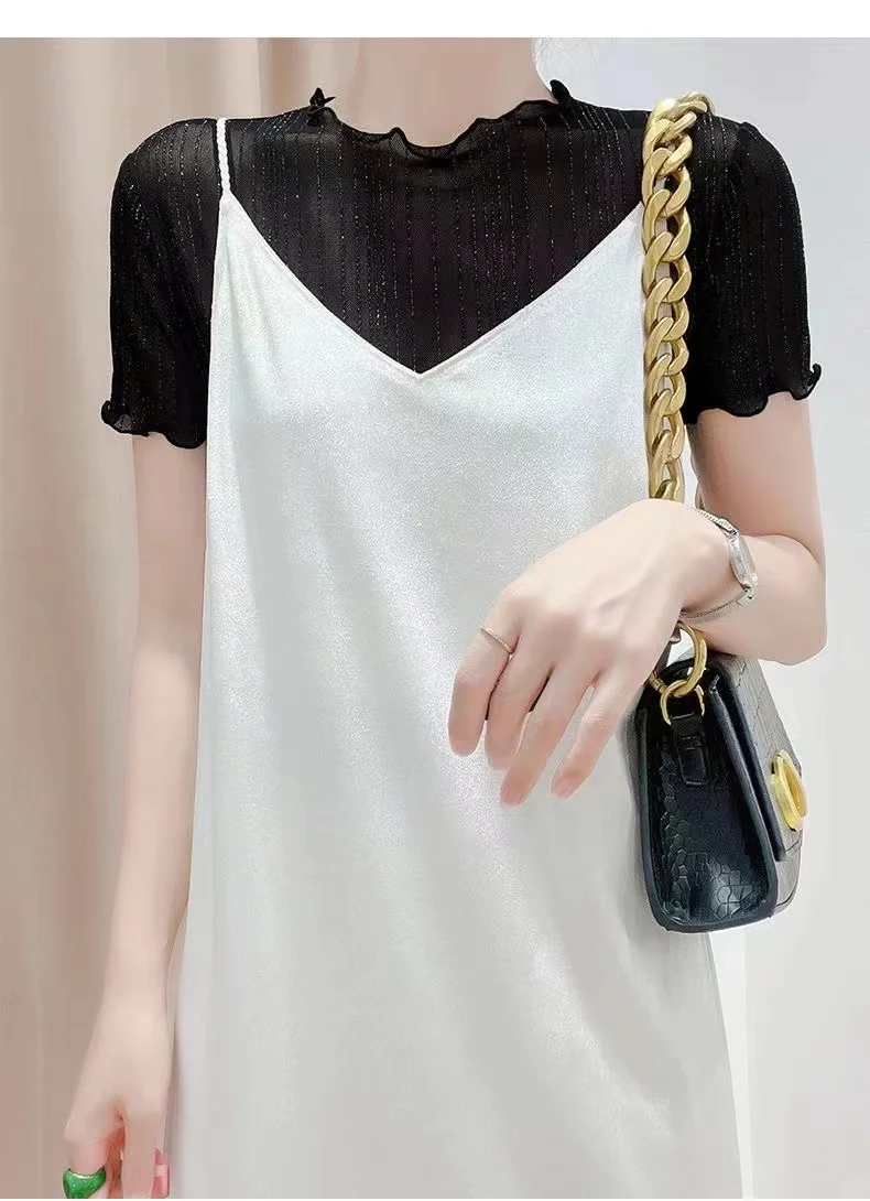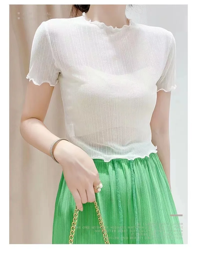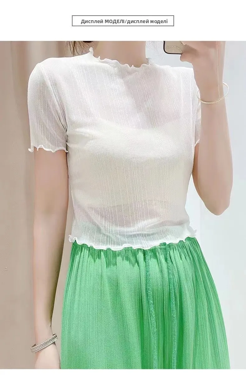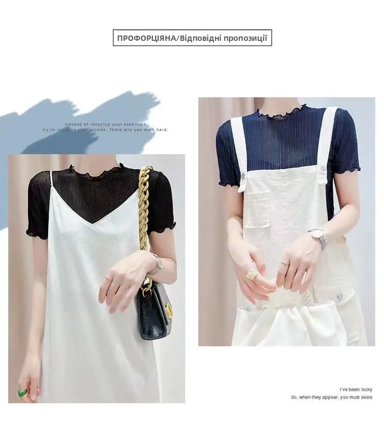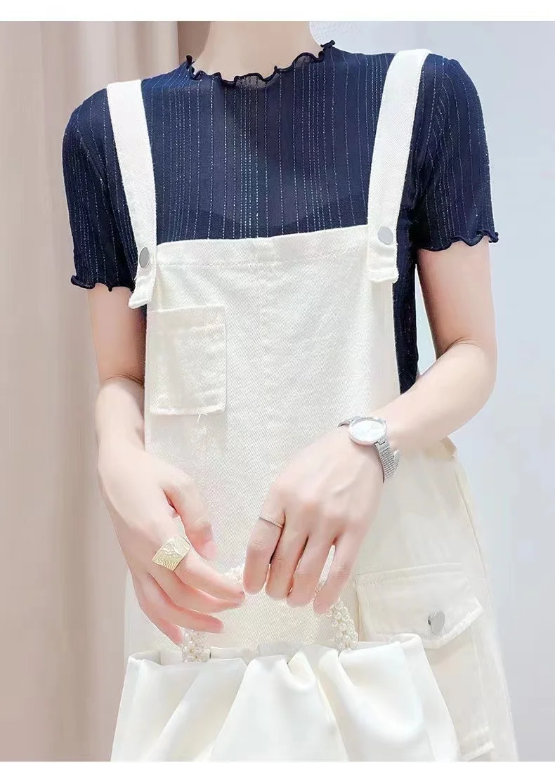 The top boasts a trendy woodgrain edge and shiny thread detailing, adding a touch of elegance to your outfit.