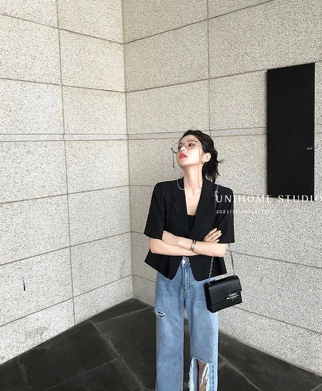 Featuring a single-button closure, this blazer offers easy wear and removal, making it a practical choice for daily wear.