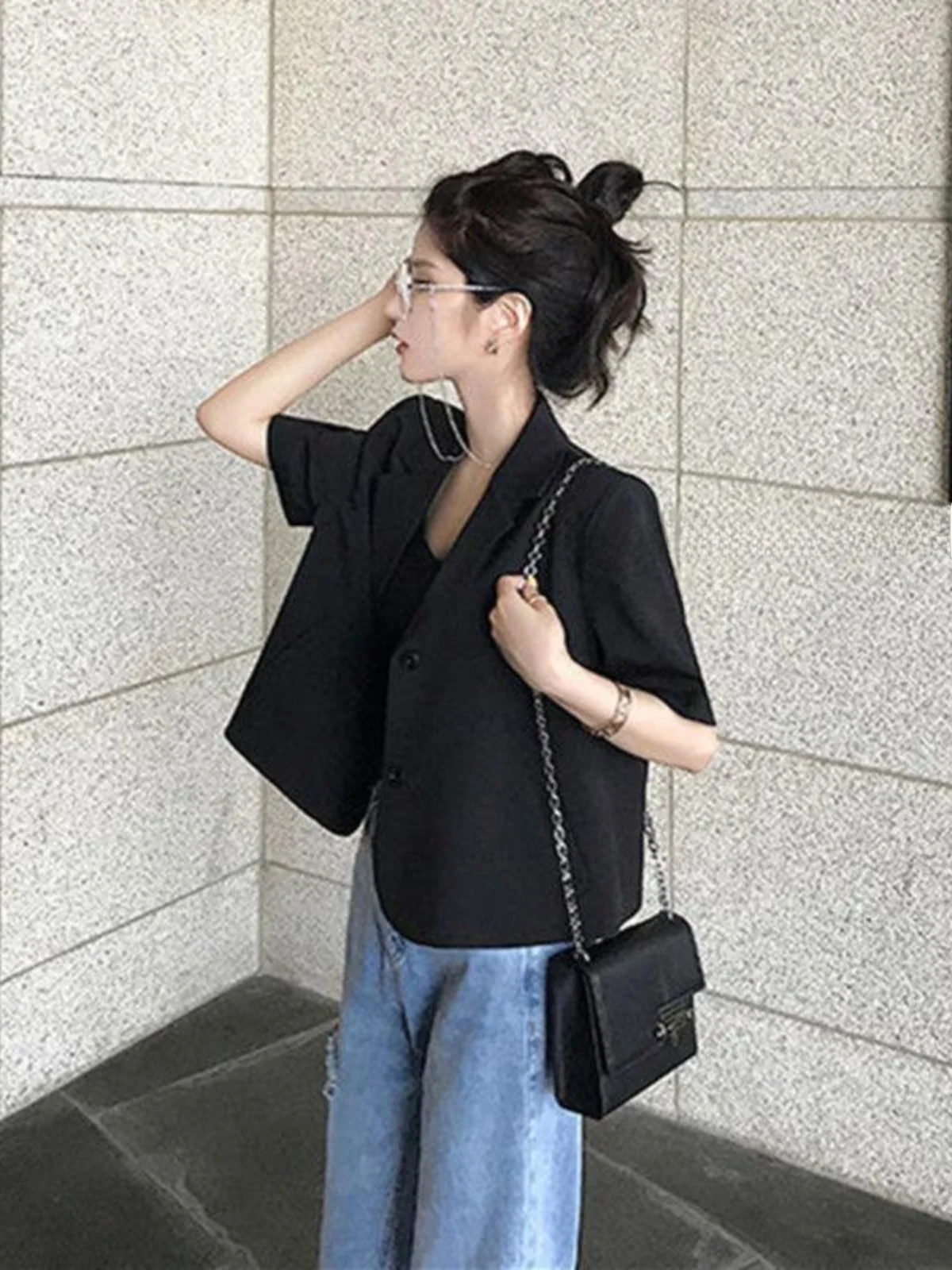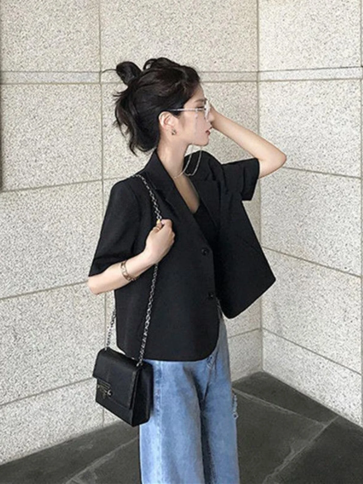 Featuring a single-button closure, this blazer offers easy wear and removal, making it a practical choice for daily wear.