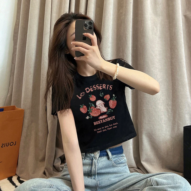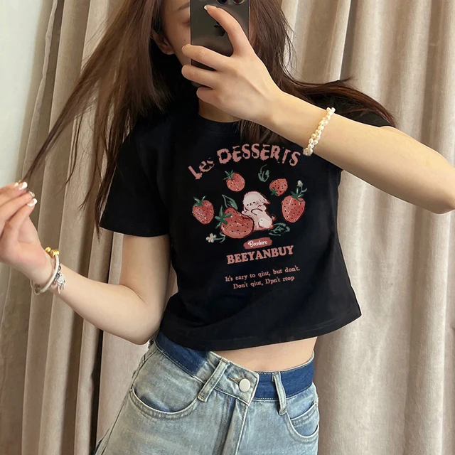 The short length of this T-shirt adds a trendy touch to your summer wardrobe, making it a standout piece.