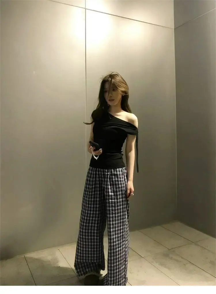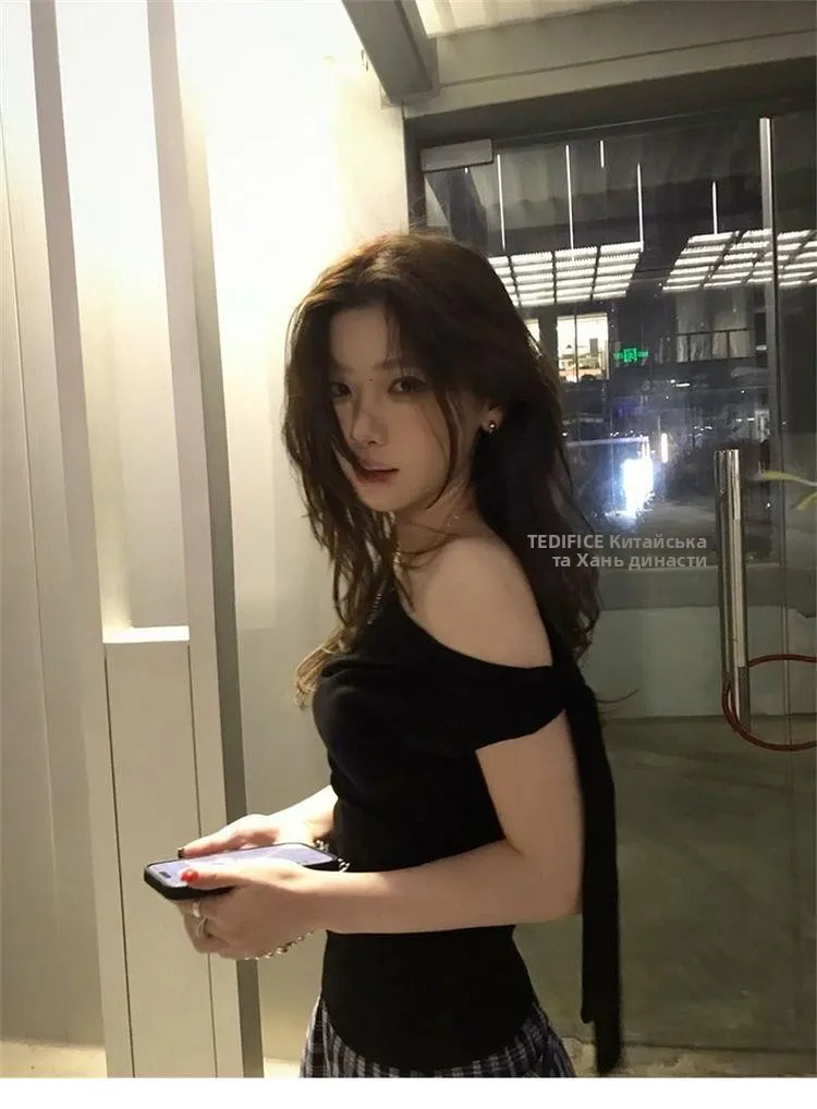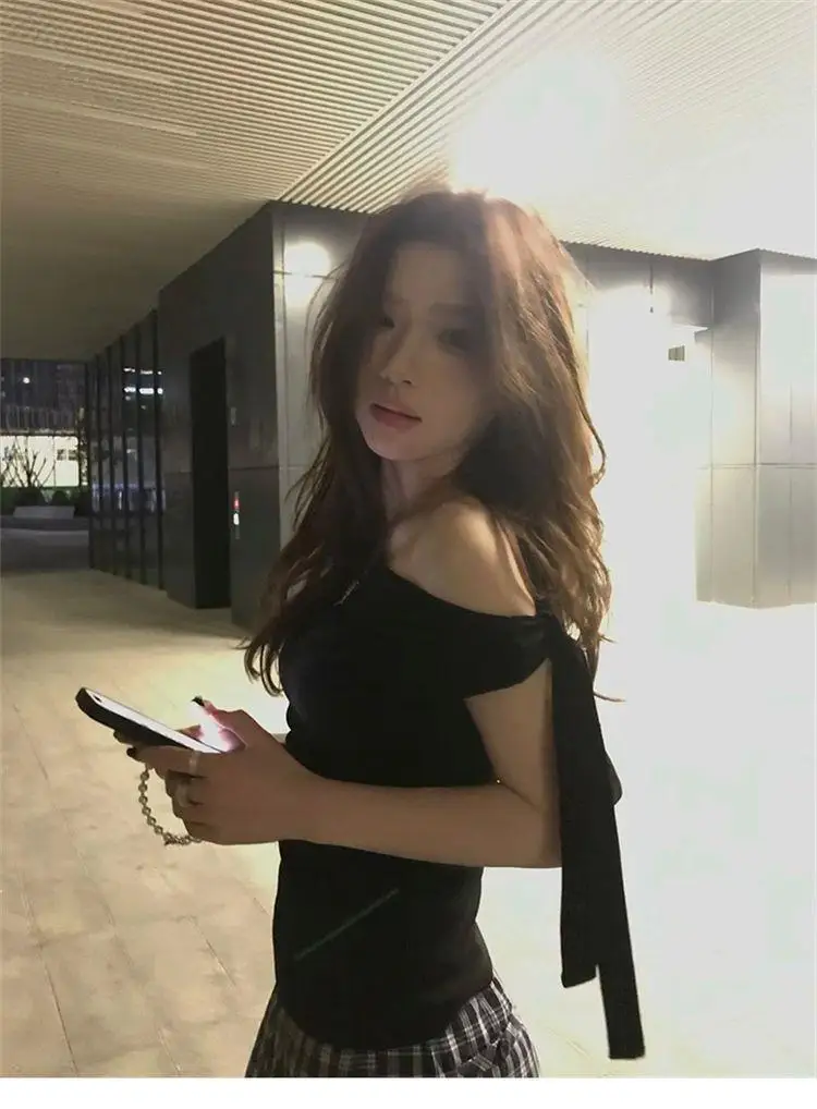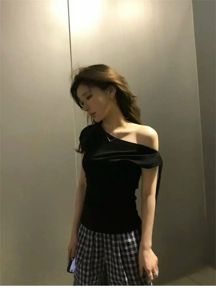 This black off-shoulder short-sleeved T-shirt features a unique design that sets it apart from ordinary tees, making it a standout piece in your wardrobe.
