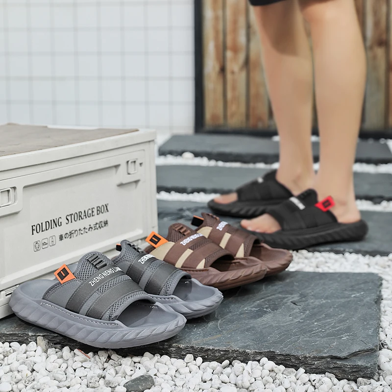 Black Beach Sandals for Men Non Slip Cushioned Sole Lightweight Outdoor Shoes Mens Summer Park Casual