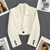 Black Cropped Blazers Woman Trend 2024 New All-match Notched Collar Crop Jacket Women Korean Chic Single