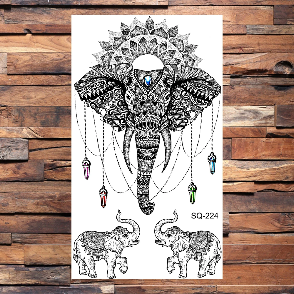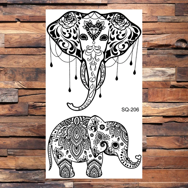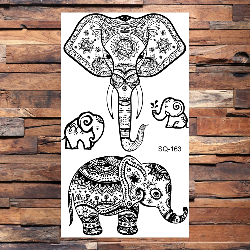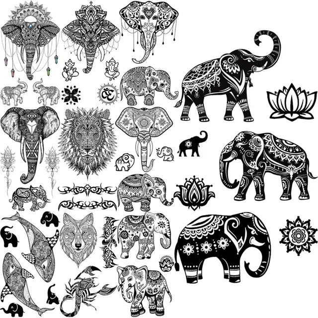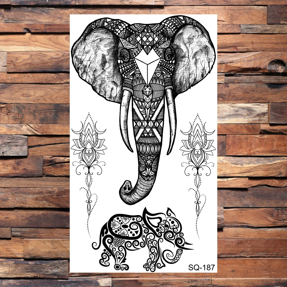 Black Elephant Temporary Tattoos For Women Men Realistic Lion Whale Wolf Scorpion Thorns Fake Tattoo Paste Arm Body Tatoos 3D