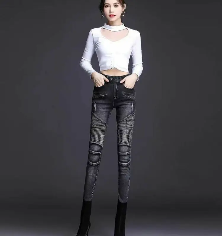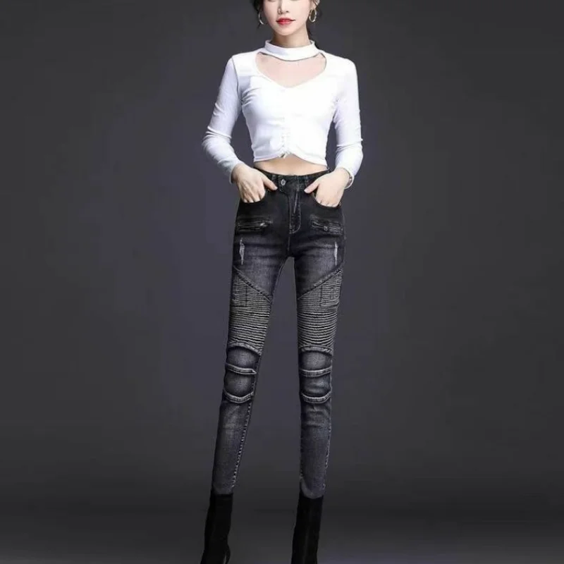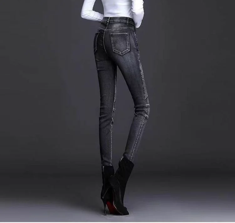 SPARSHINE SS Skinny Jeans for Women High Waist Panties 2023 Black Gray and Blue Slim Fit Trousers Autumn and Winter Elastic Was