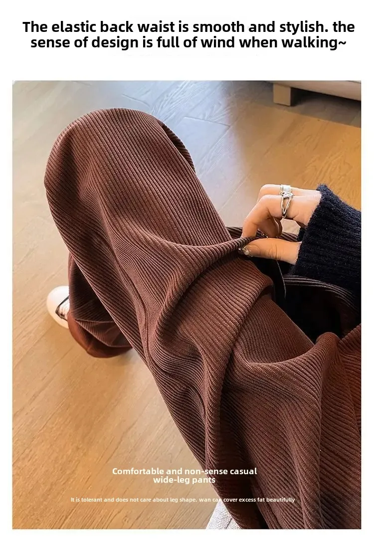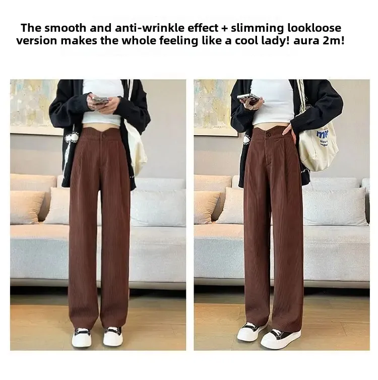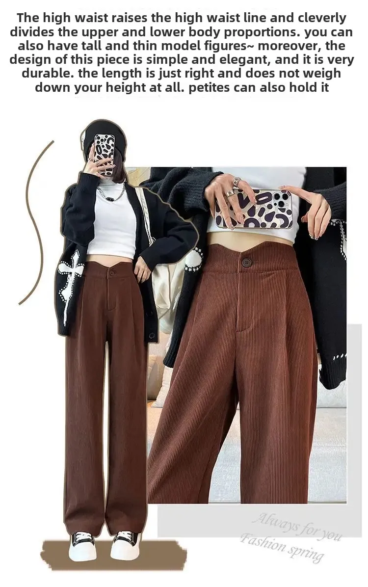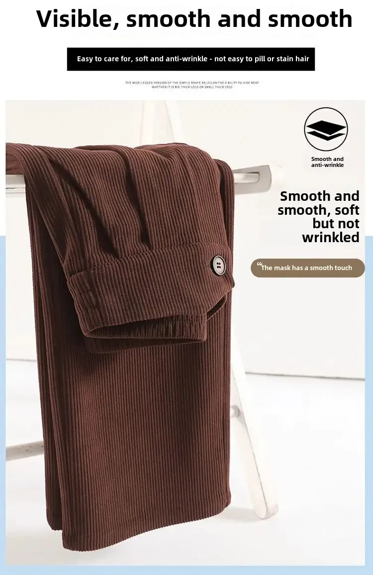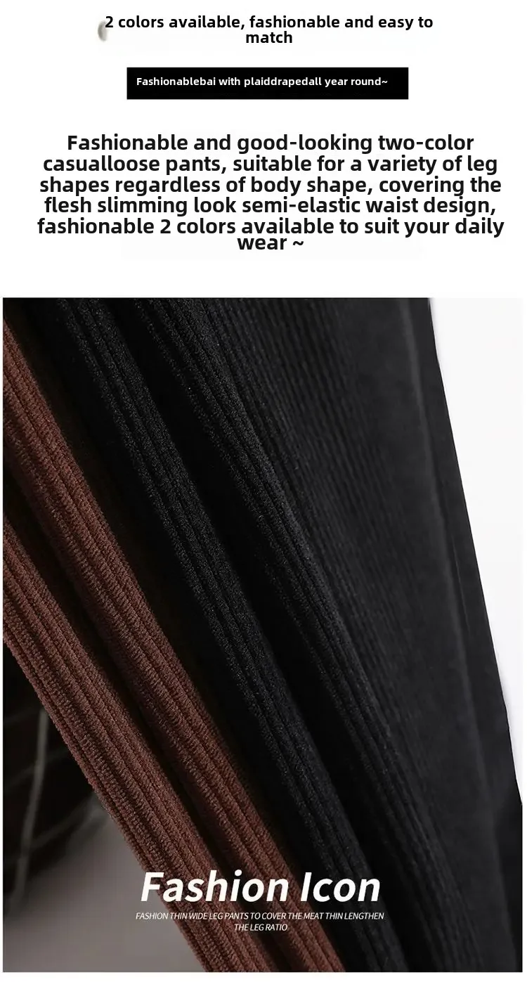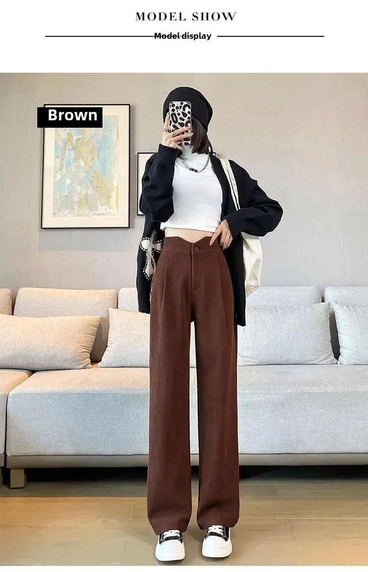 Black High Waist Drapey Chenille Wide Leg Pants Slimming Straight Corduroy Casual Floor-Length Trousers for Women
