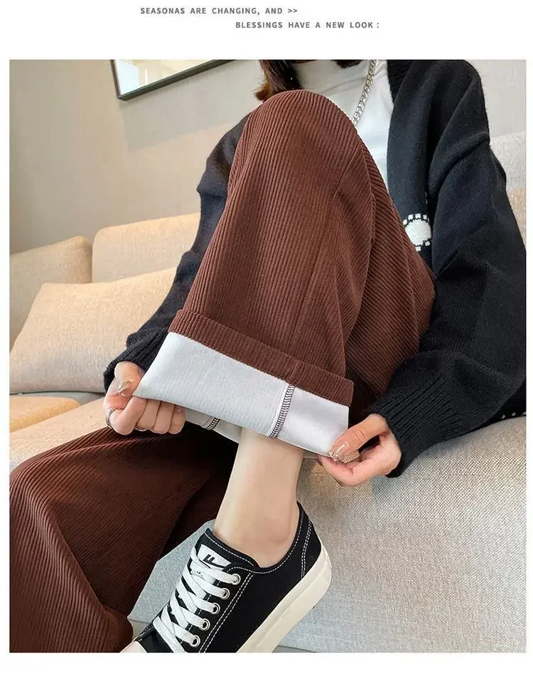 • Slimming Straight Cut : The slimming straight cut of these corduroy trousers enhances your figure, creating a streamlined look.