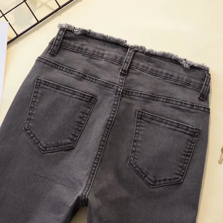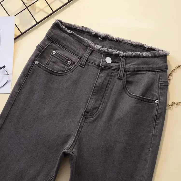 Black High-waisted Elastic Slimming Jeans For Women Micro Flared Straight Leg Loose Fit Wide Leg Fringebell Bottom Pants Trendy