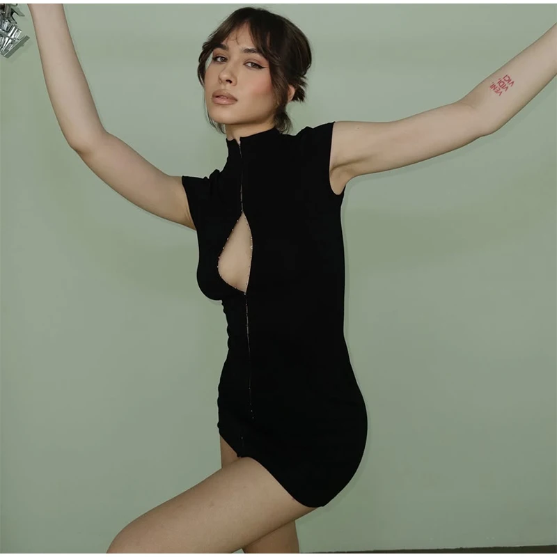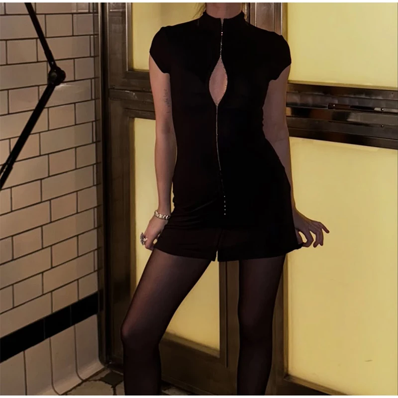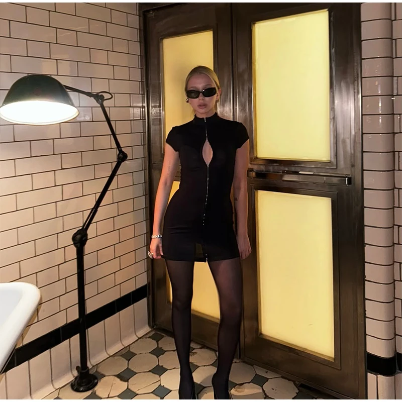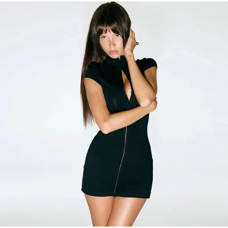 Lace Patchwork Women Hollow Out Bodycon Sheath High Collar Half Sleeves Sexy Female Mini Dresses 2026 Club Fashion Vestidos New