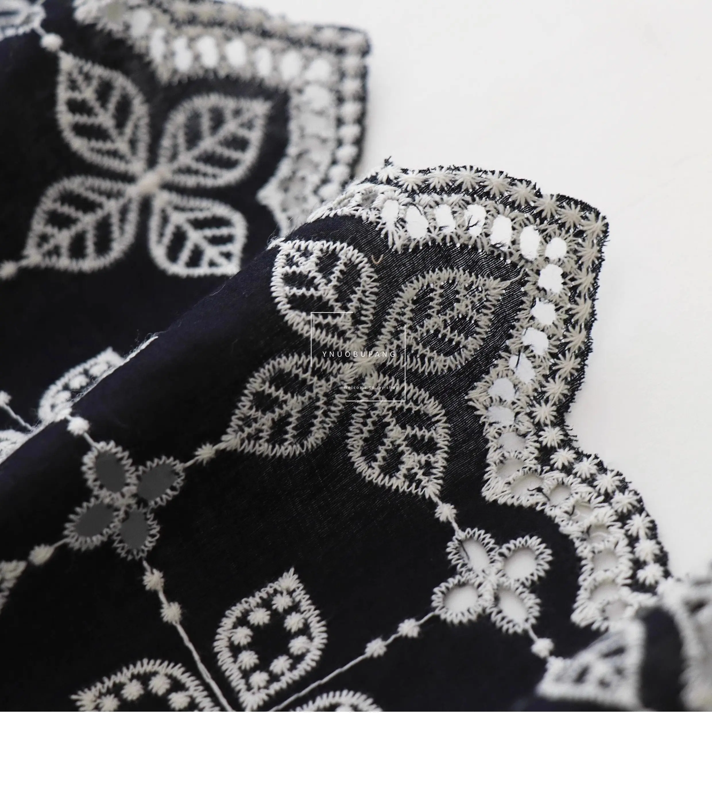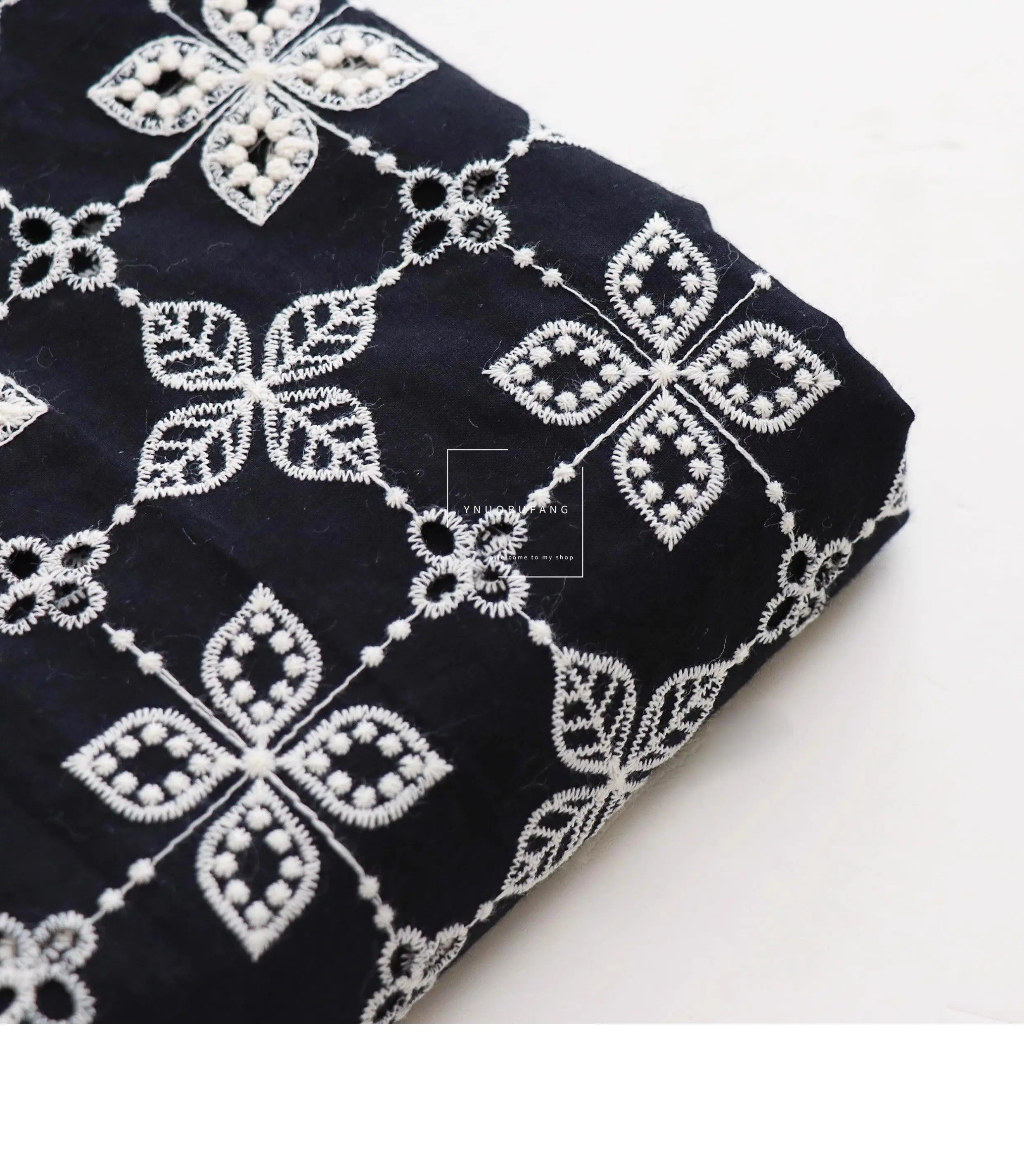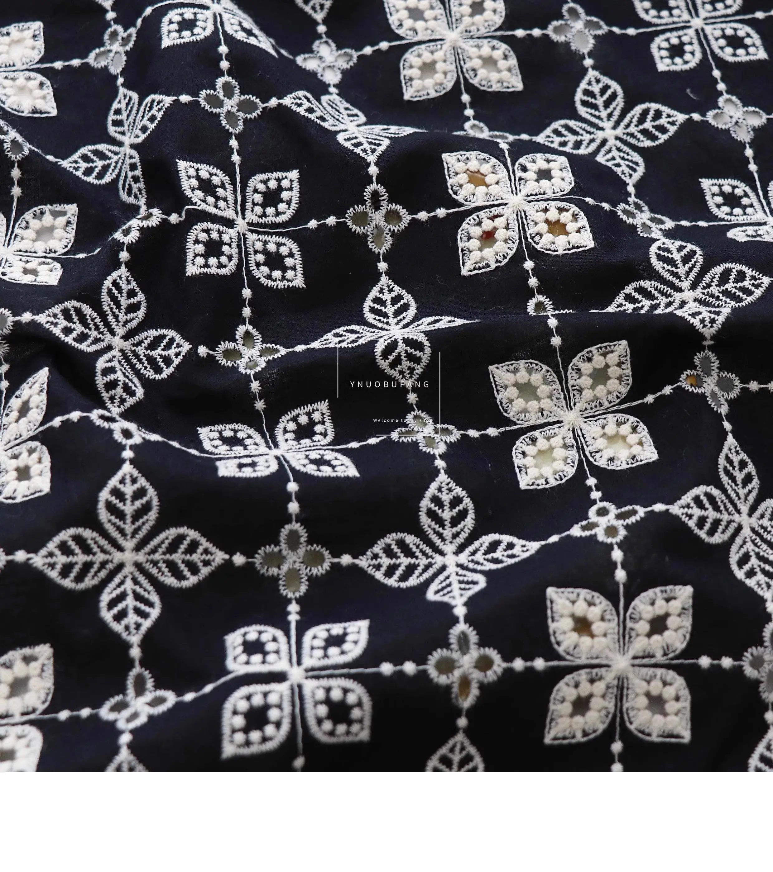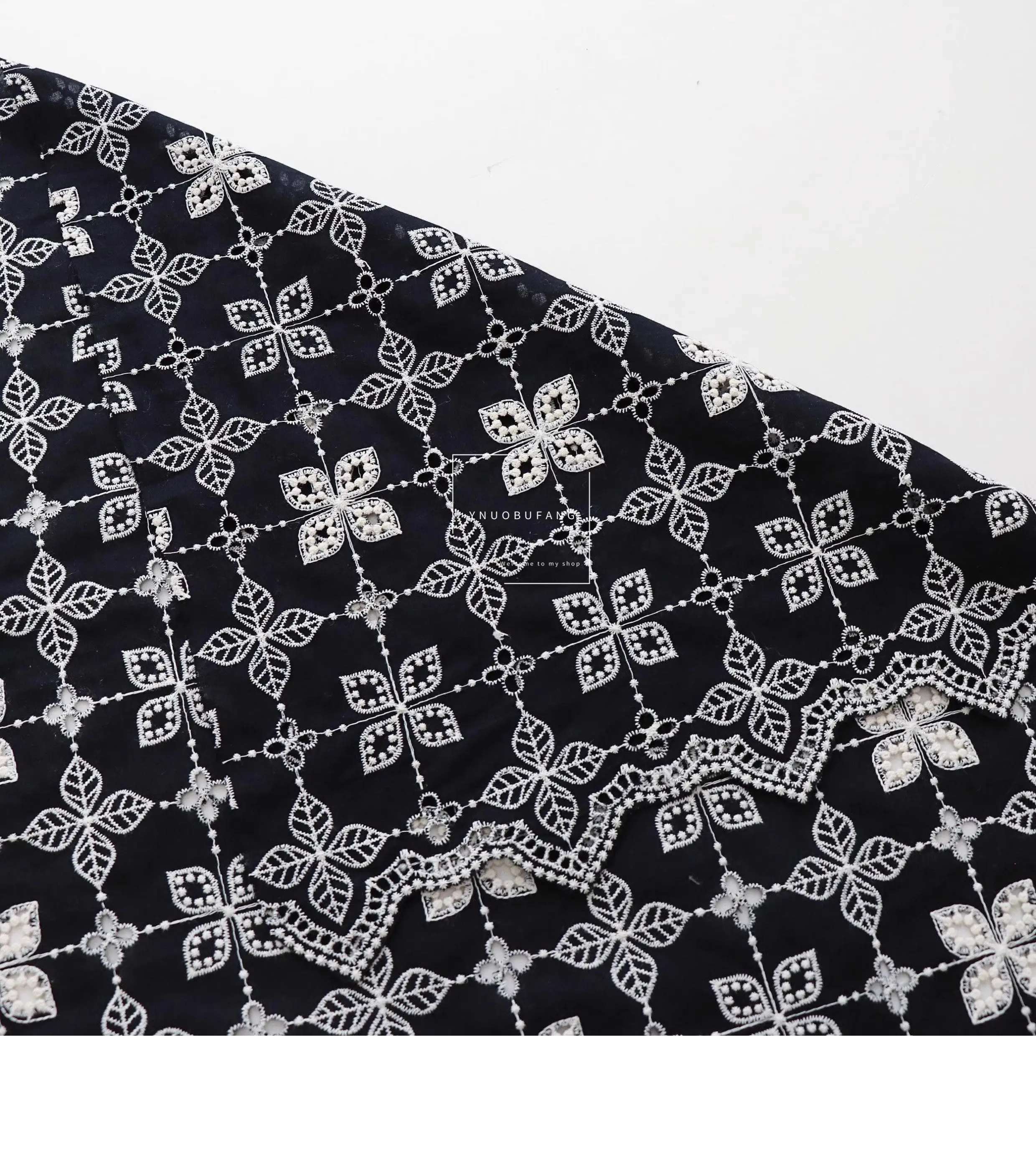 Black Hollowed Out Embroidered Pure Cotton Fabric Dresses Shirts Clothing Accessories DIY Handmade Fabric