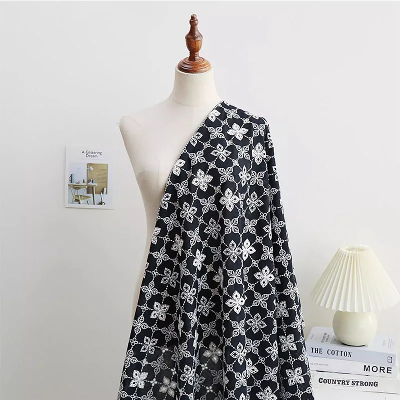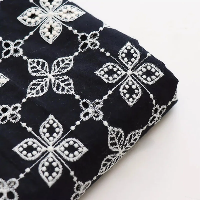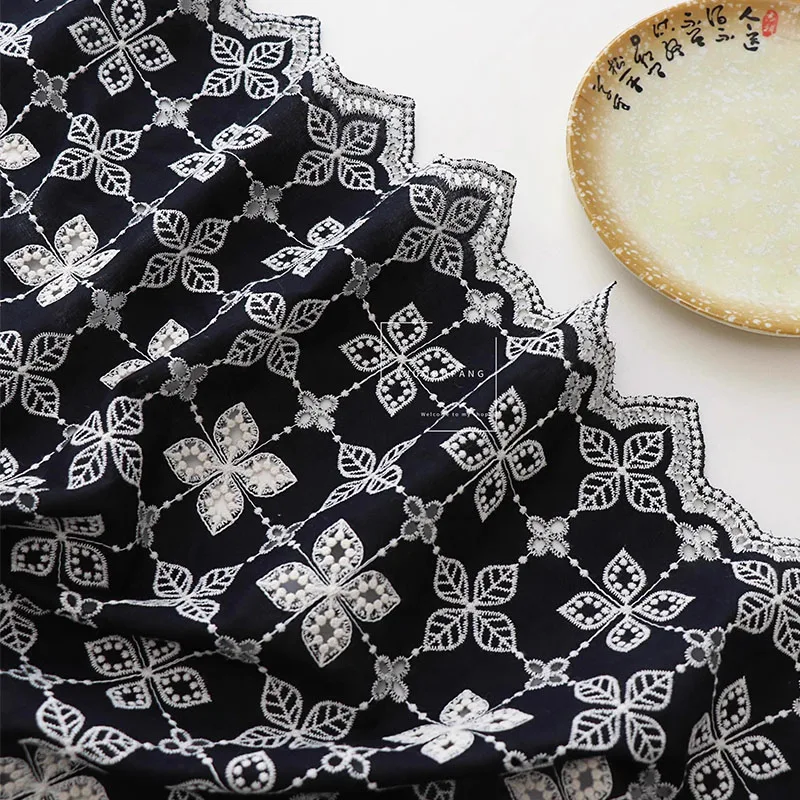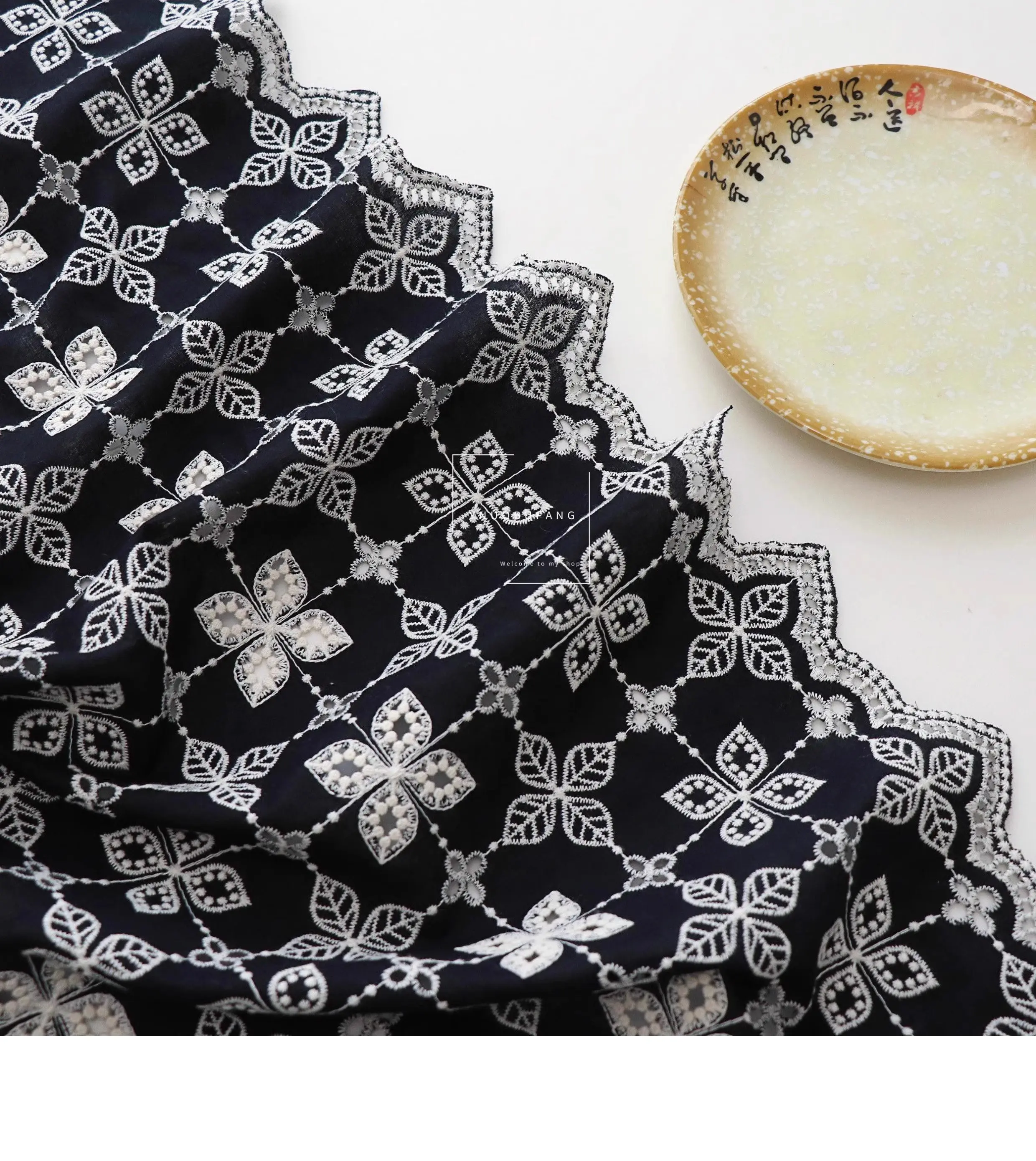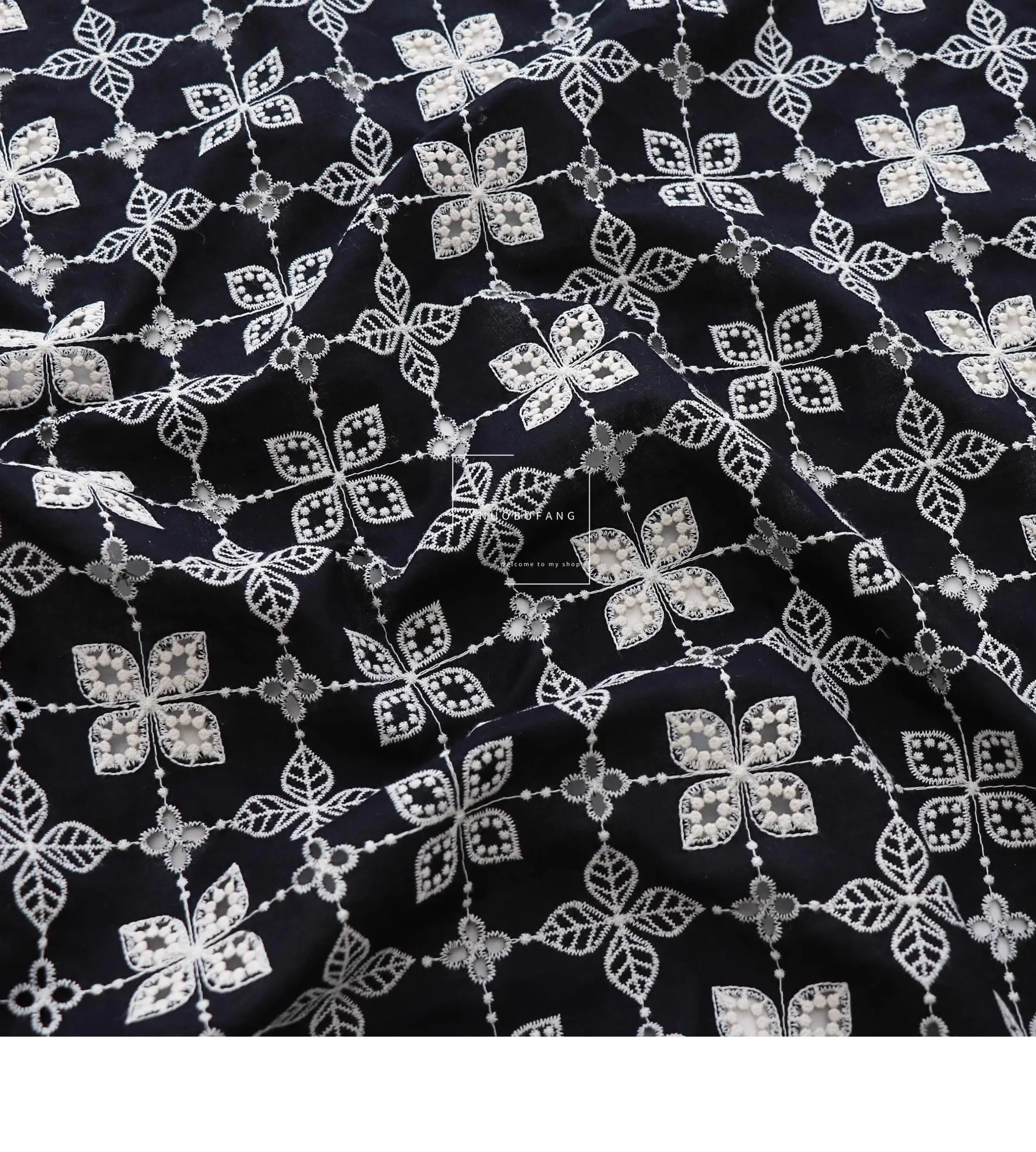 Black Hollowed Out Embroidered Pure Cotton Fabric Dresses Shirts Clothing Accessories DIY Handmade Fabric