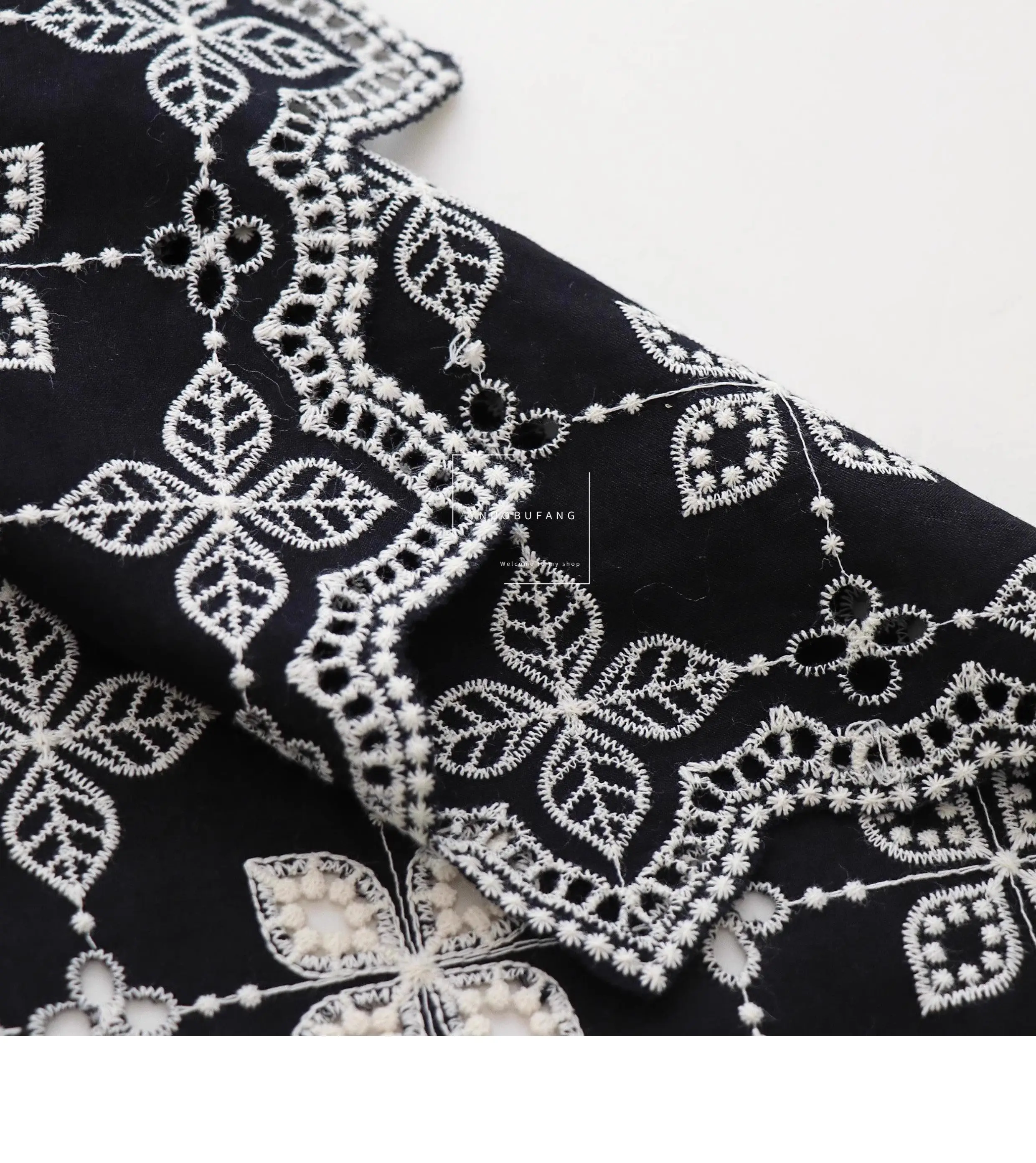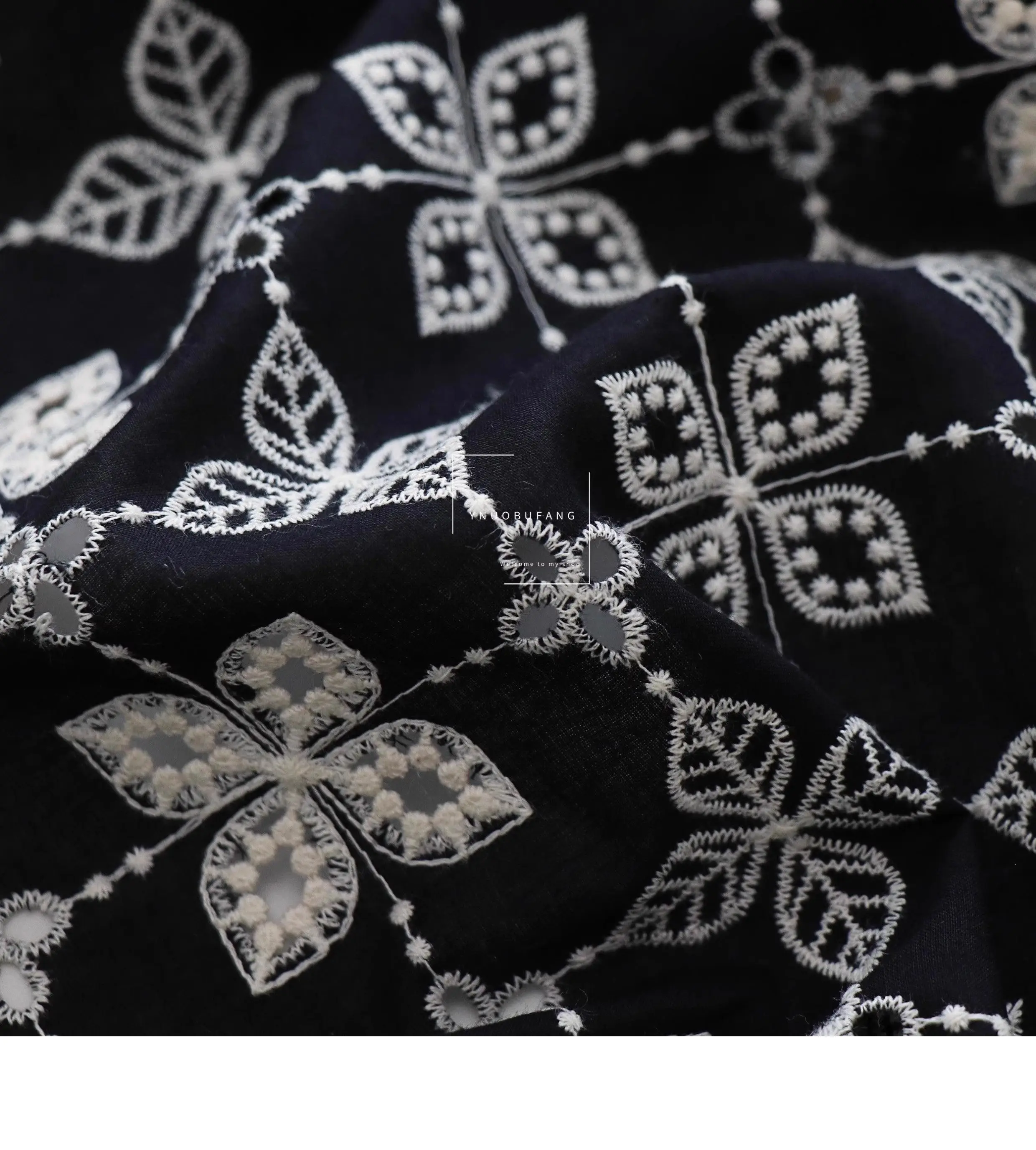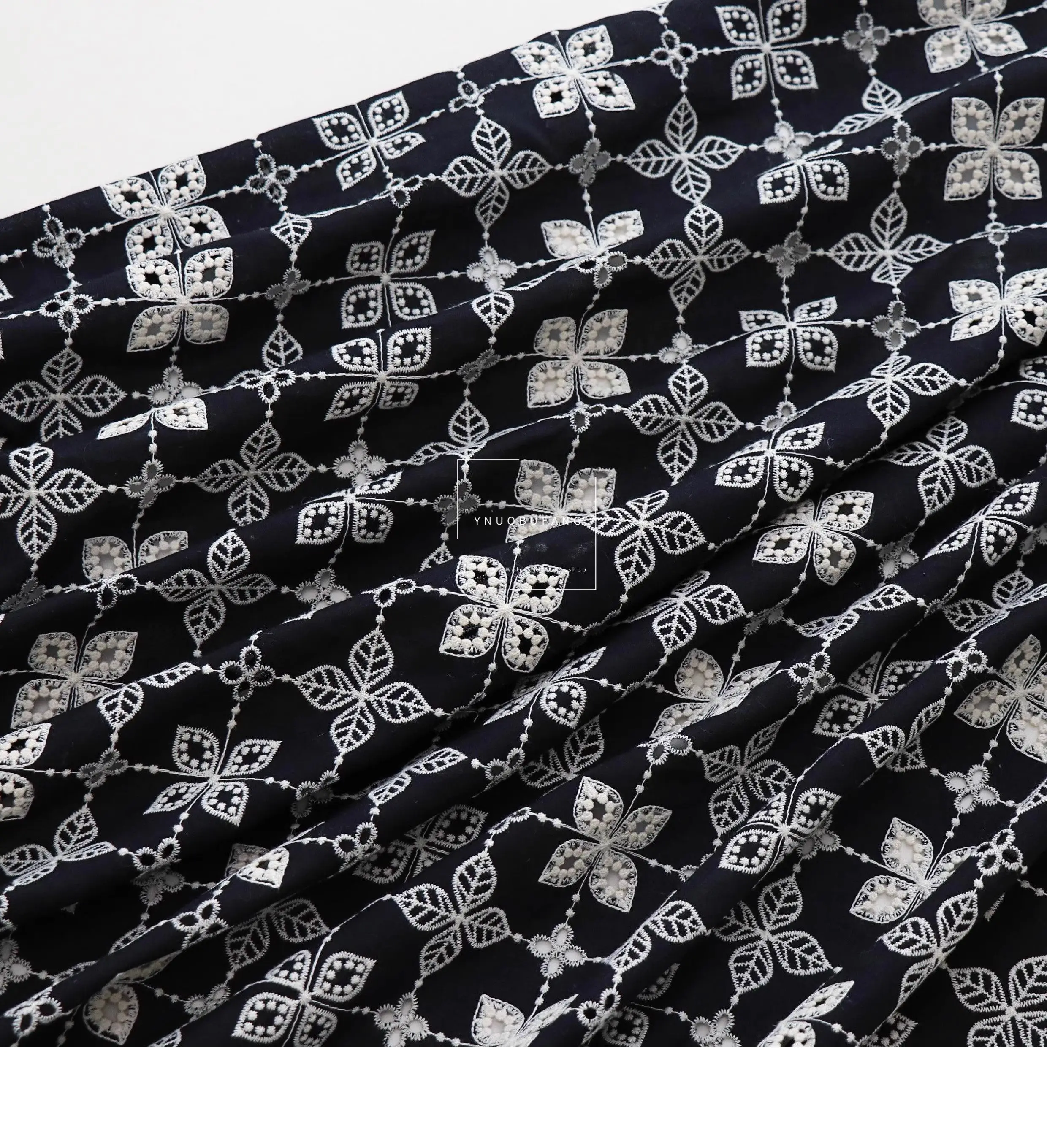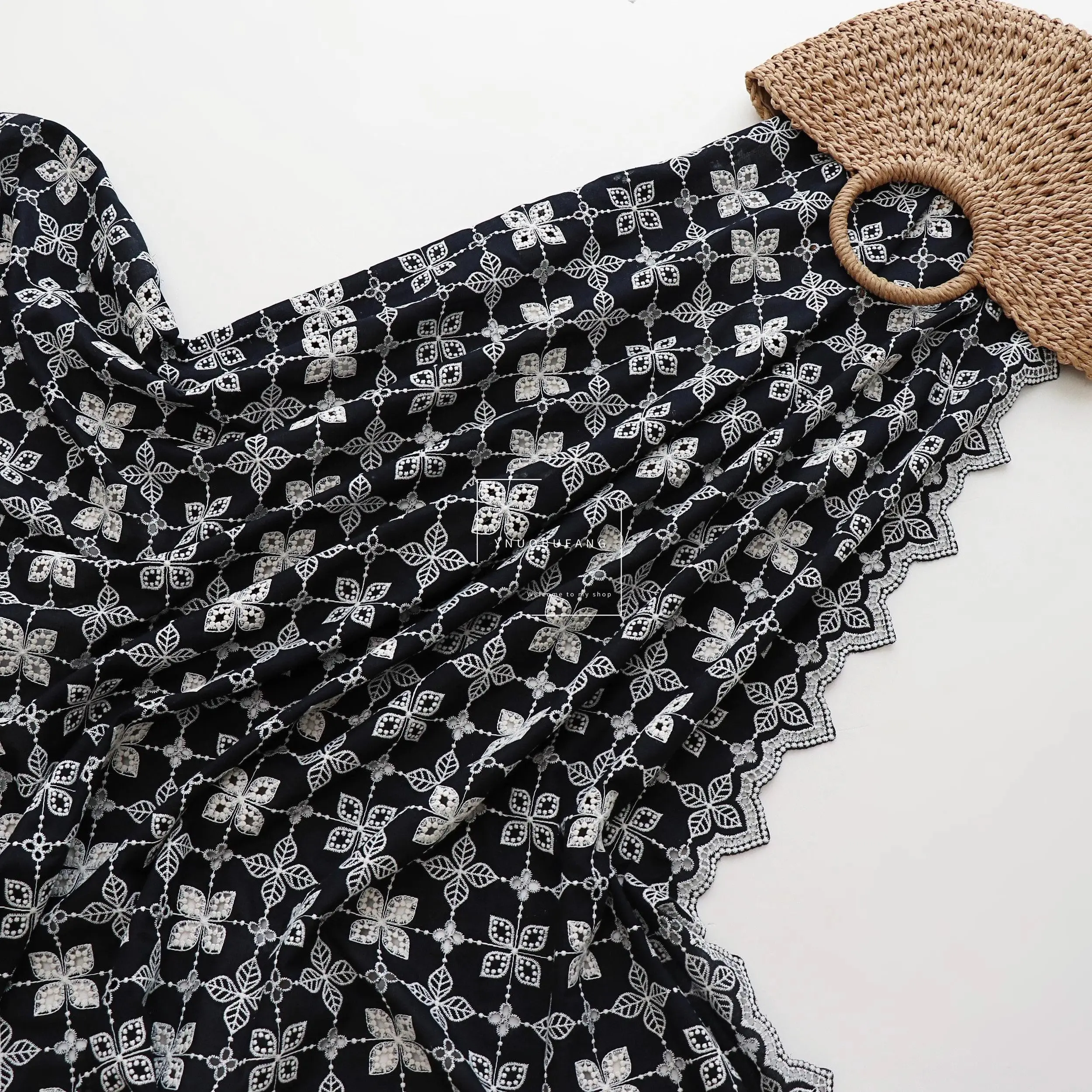 Black Hollowed Out Embroidered Pure Cotton Fabric Dresses Shirts Clothing Accessories DIY Handmade Fabric