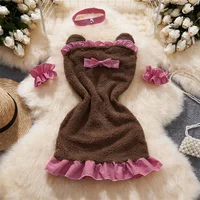 Sweet Sexy Lace Patchwork Strap Dress Bow Hollow Backless Sleeveless Nightgown Women Nightdress Pajamas Hot Slim Pleated Dress