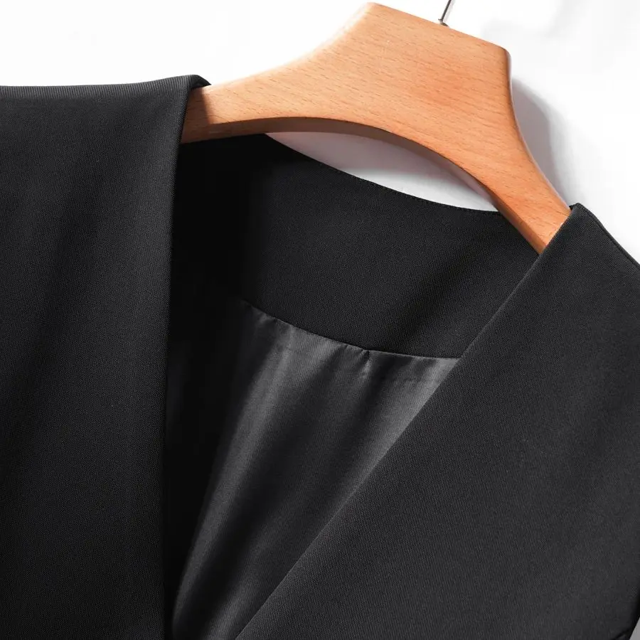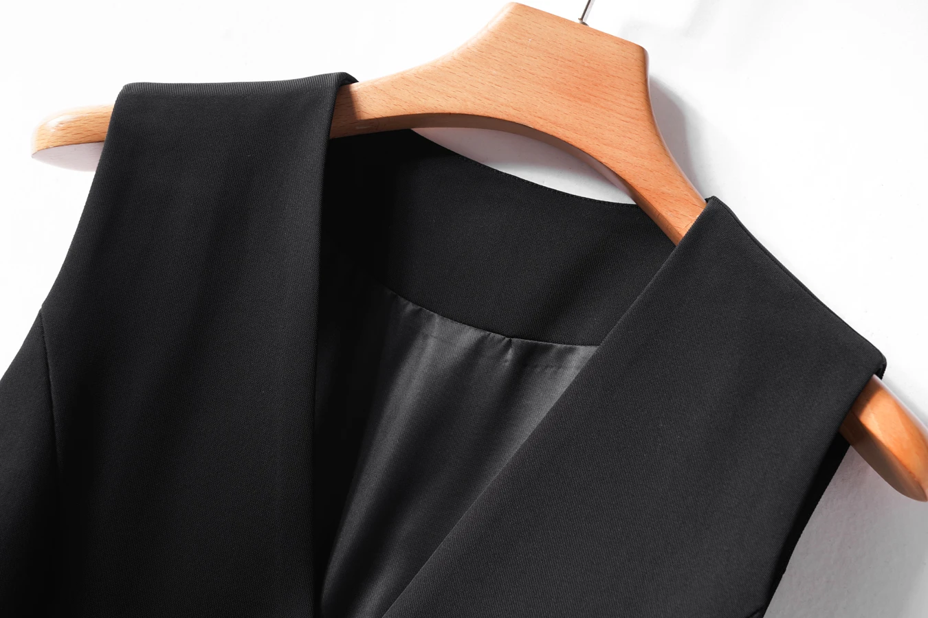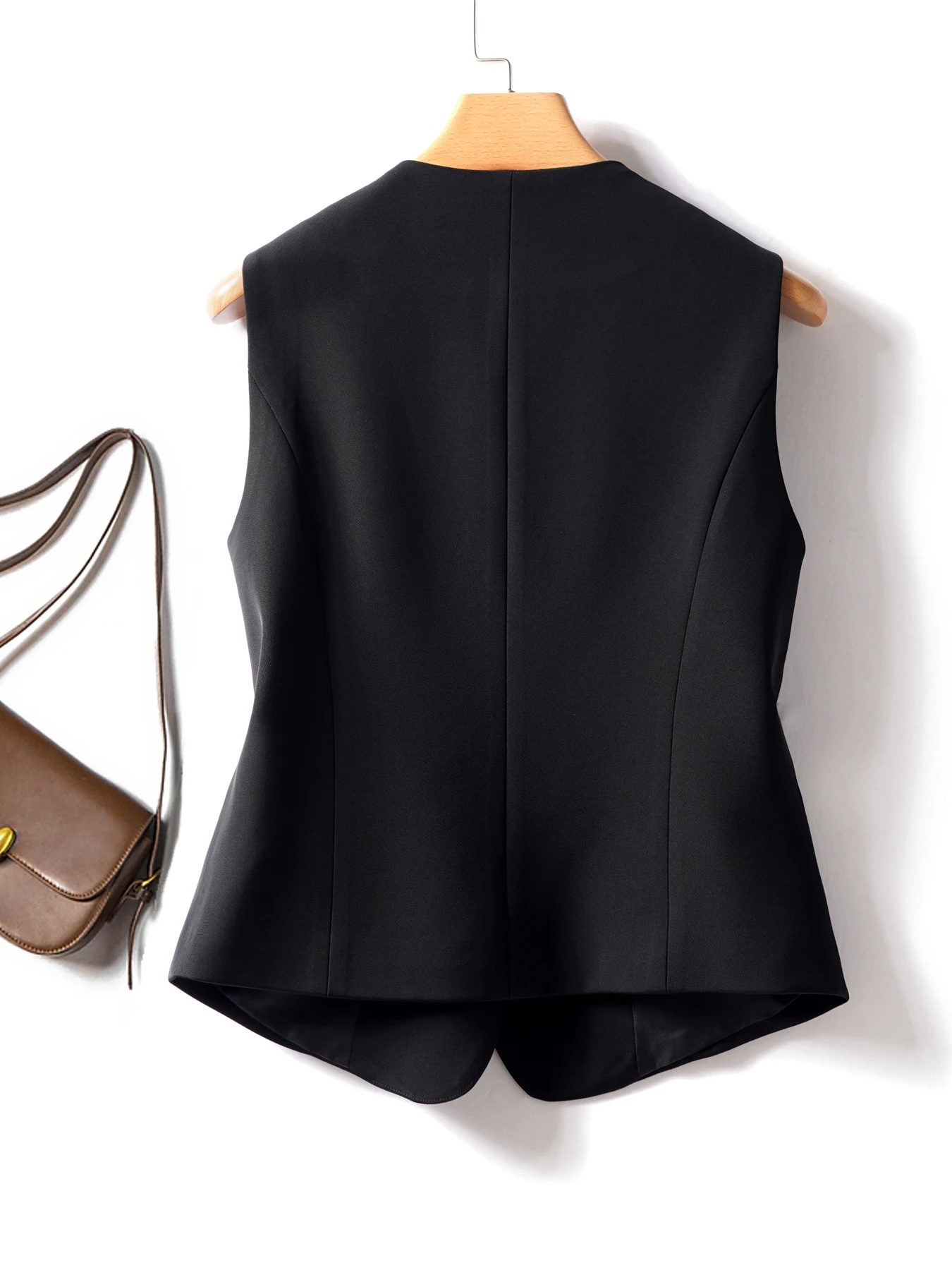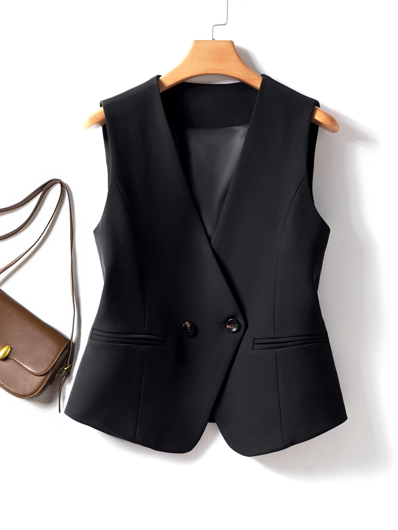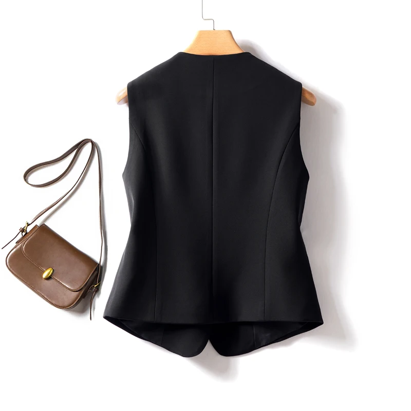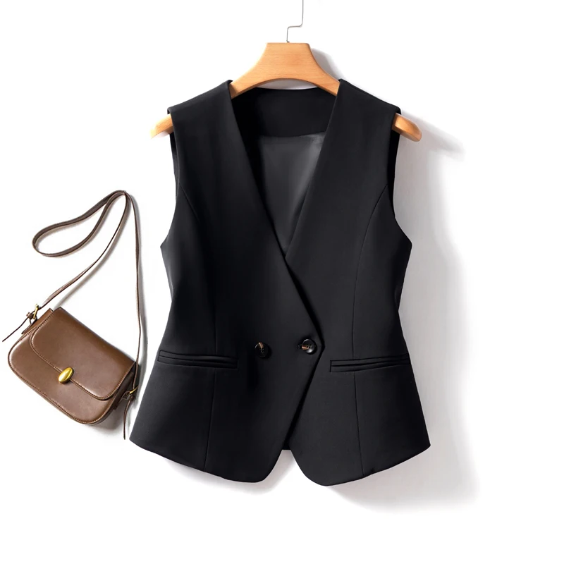 Black V-neck short double-breasted vest women’s jacket spring and autumn workplace Slim and thin