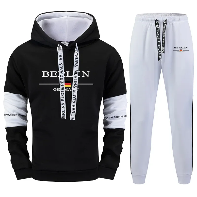 Black White Mens Tracksuit Printed Casual Sweatshirts Sportswear Outdoors Sports Jogging Mens Clothing Single Piece Hoodie Pants