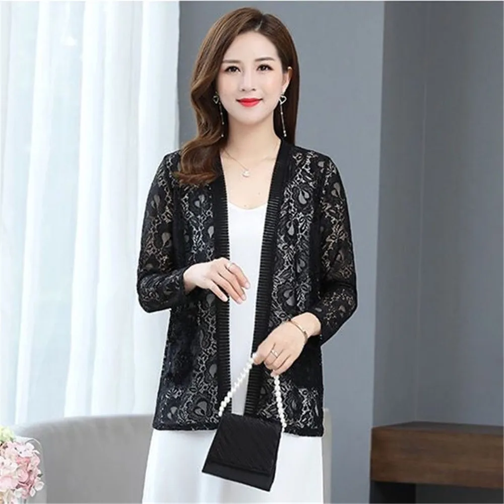 Plus Size 6XL Spring Summer Women Cardigan Long Sleeve Female Cardigans Women Lace Jacket Ladies Shawl Outerwear