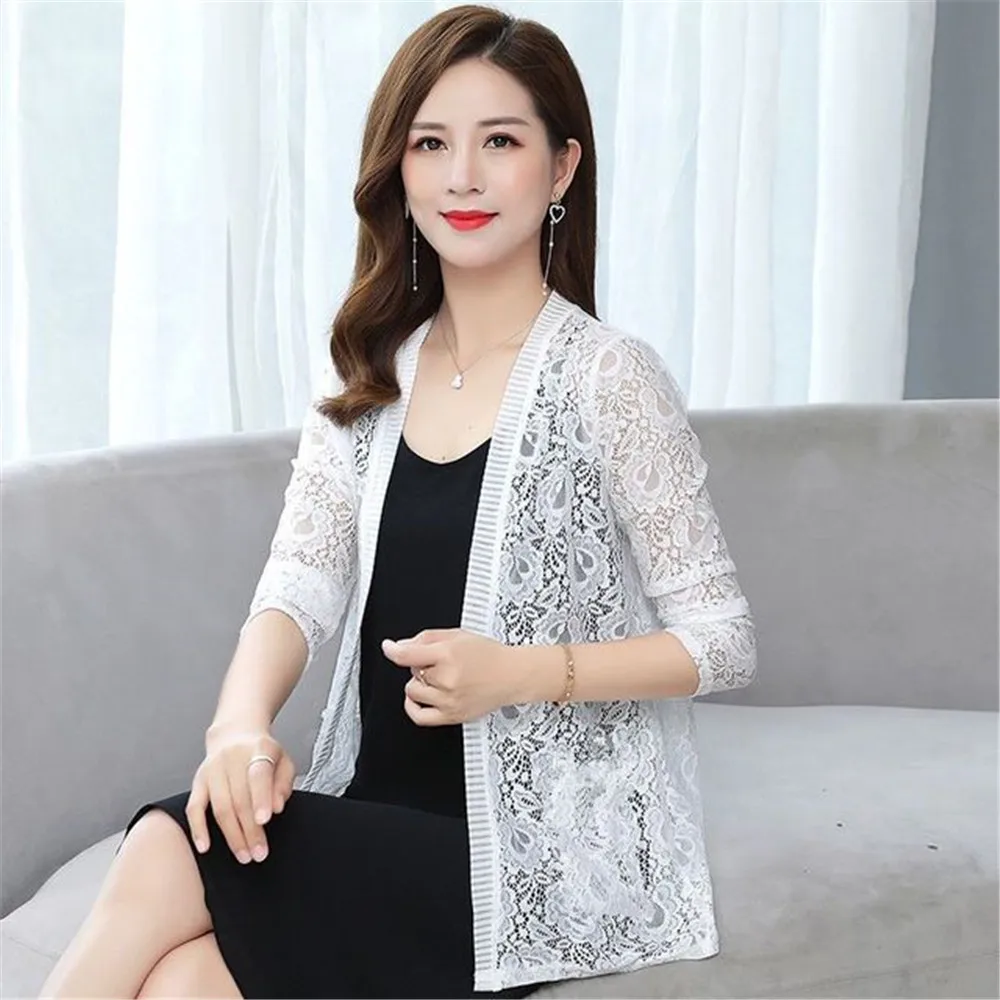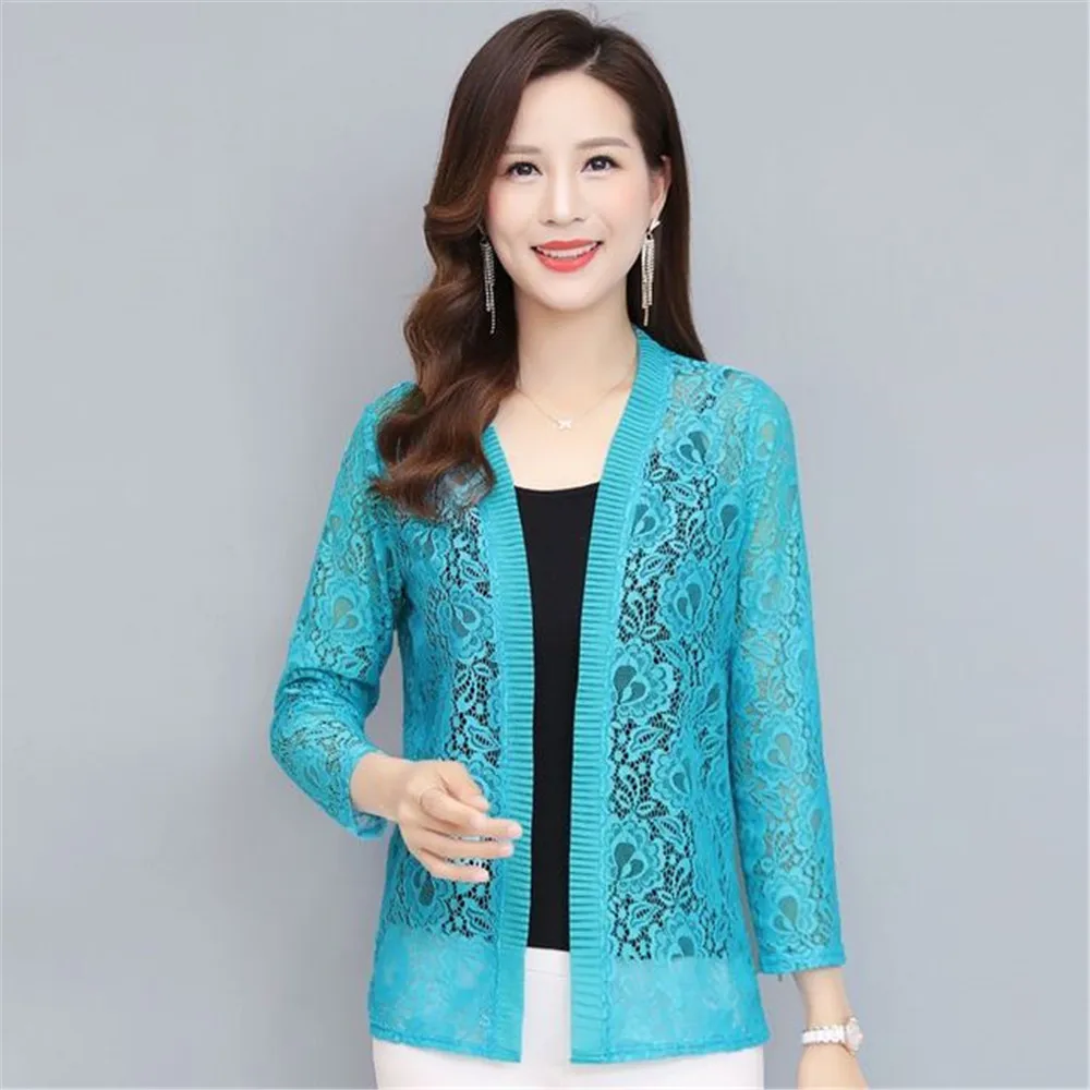 Plus Size 6XL Spring Summer Women Cardigan Long Sleeve Female Cardigans Women Lace Jacket Ladies Shawl Outerwear