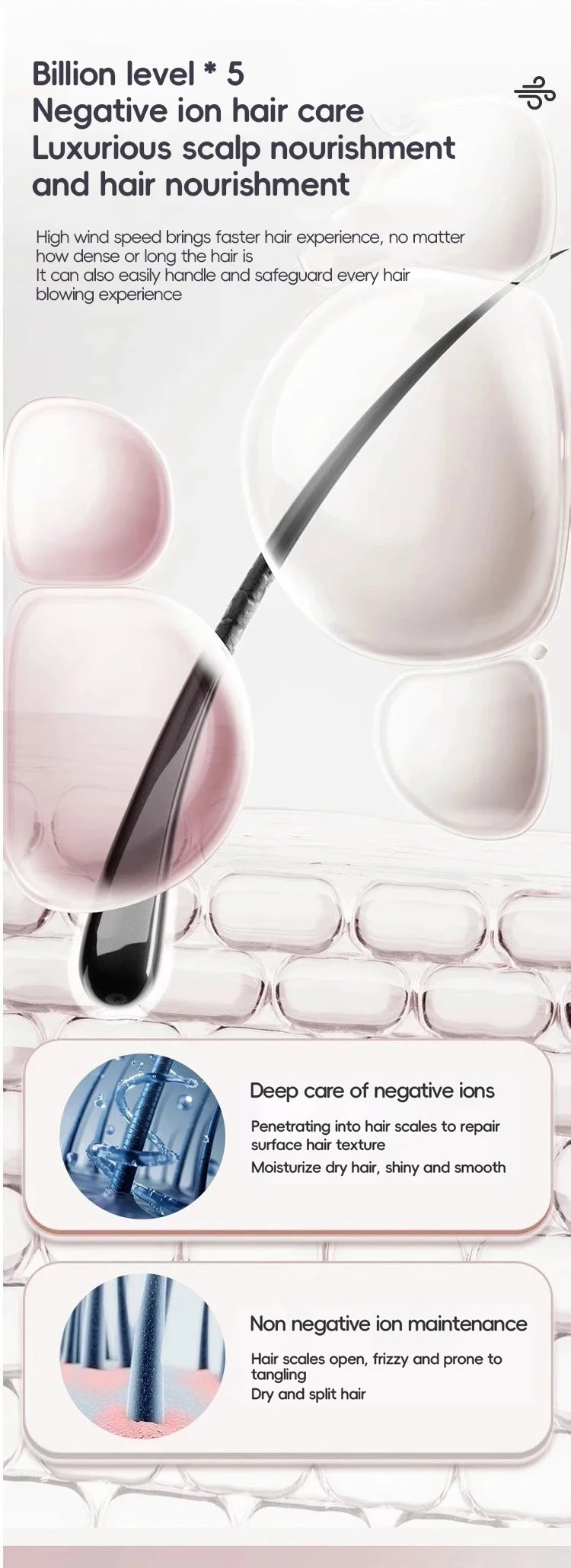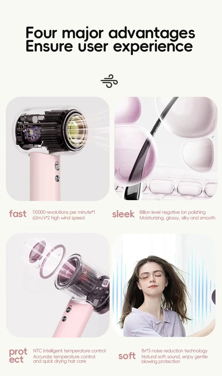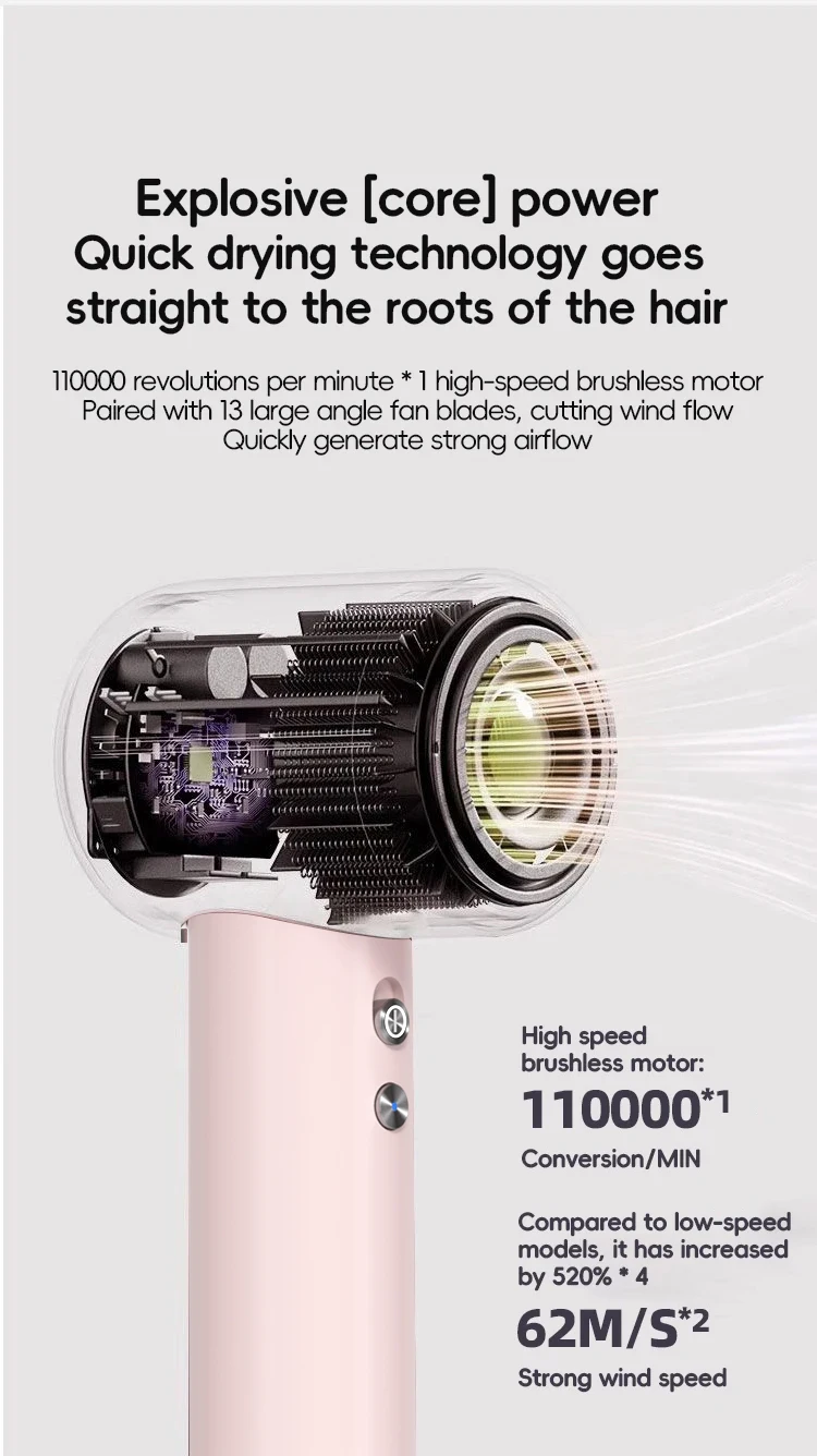 High wind speed brings faster hair experience, no matter how dense or long the hair is It can also easily handle and safeguard every hair blowing experience