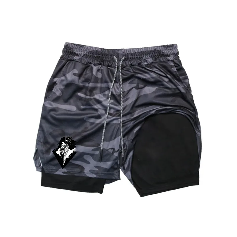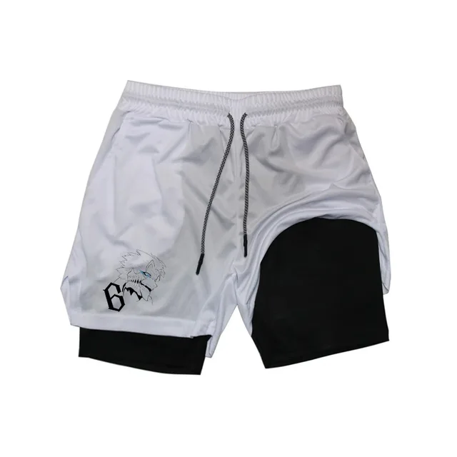 2-in-1 Compreesion Shorts for Men Gym Workout Running Athletic Anime Jujutsu Kaisen Performance with Pockets Activewear Workout
