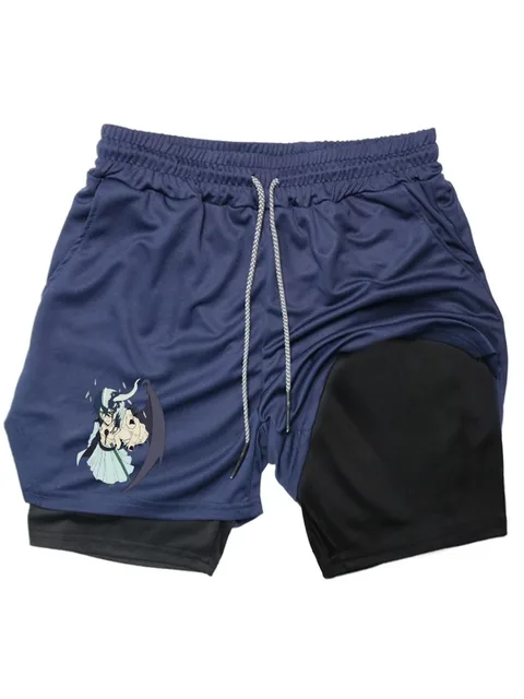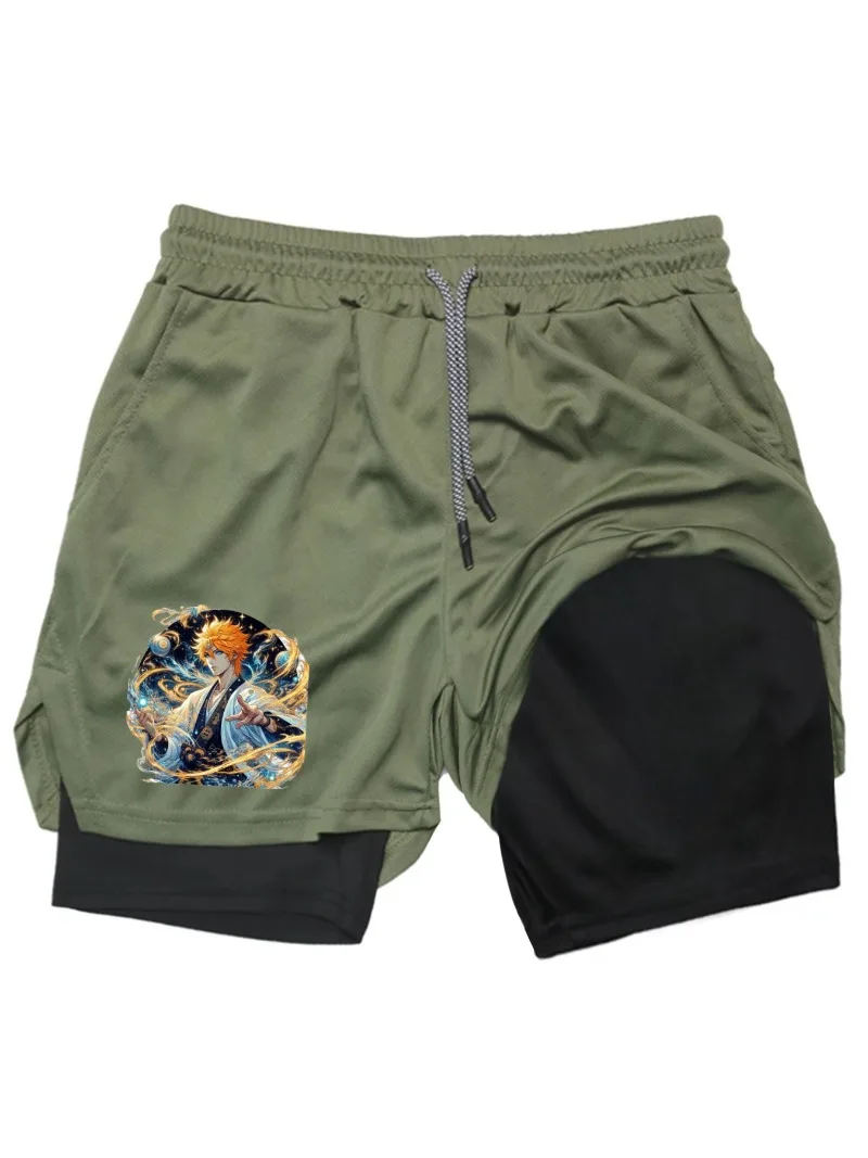 BleachPrint 2in1 Running Shorts Men Gym Workout Compression Shorts with Phone Pocket Towel Loop Summer